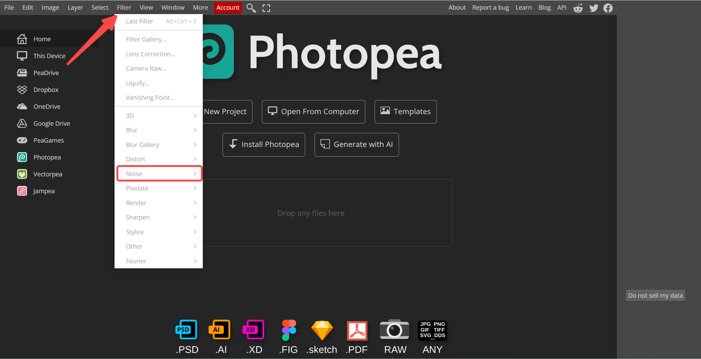 Photopea 是一款浏览器端的图像编辑工具,可以看作在线版的 Photoshop。根据其更新日志,在版本 2.1 中即支持 “Add Noise” 滤镜。如何在线使用Photopea?
