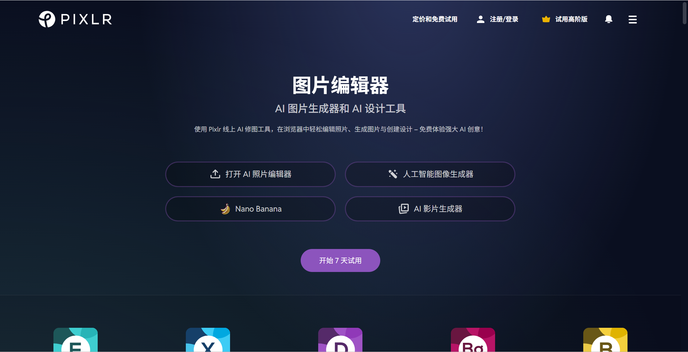 历史较久的综合型图像编辑平台,最初以在线修图、拼图和滤镜功能为主,近年来加入了 AI 生成与AI去背景模块。该平台在全球拥有超过 3 亿注册用户,支持网页端与桌面端同步使用。