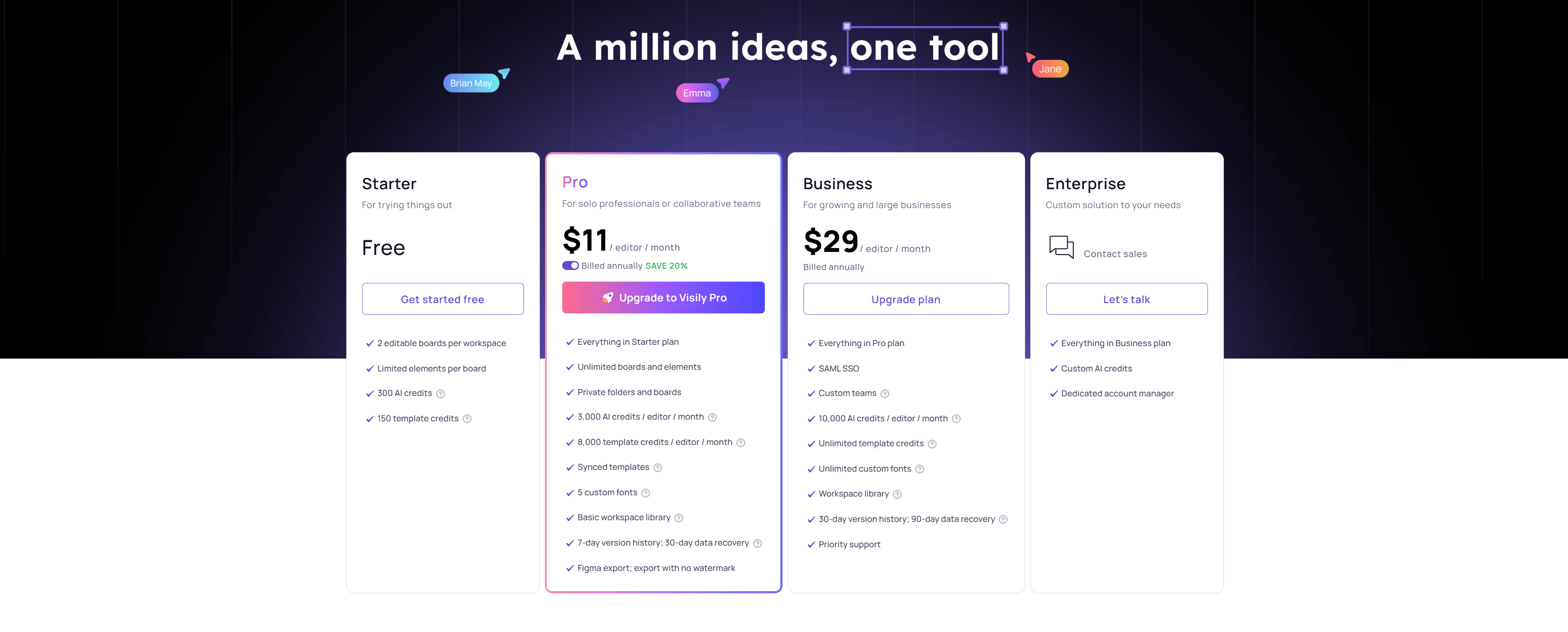 价格:Framer 平台按订阅制计费,不同套餐内含 AI 功能权限