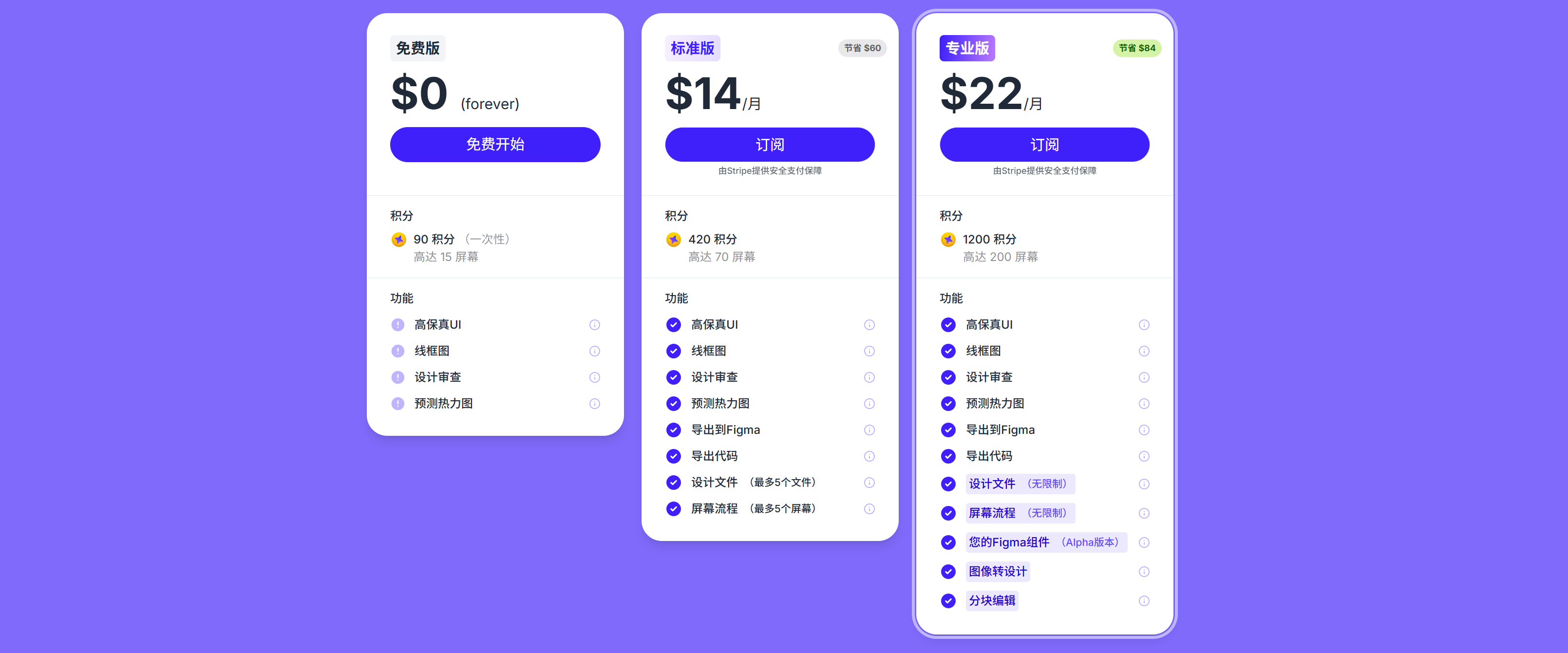 价格:通常提供免费额度、订阅式升级。按年订阅有折扣。