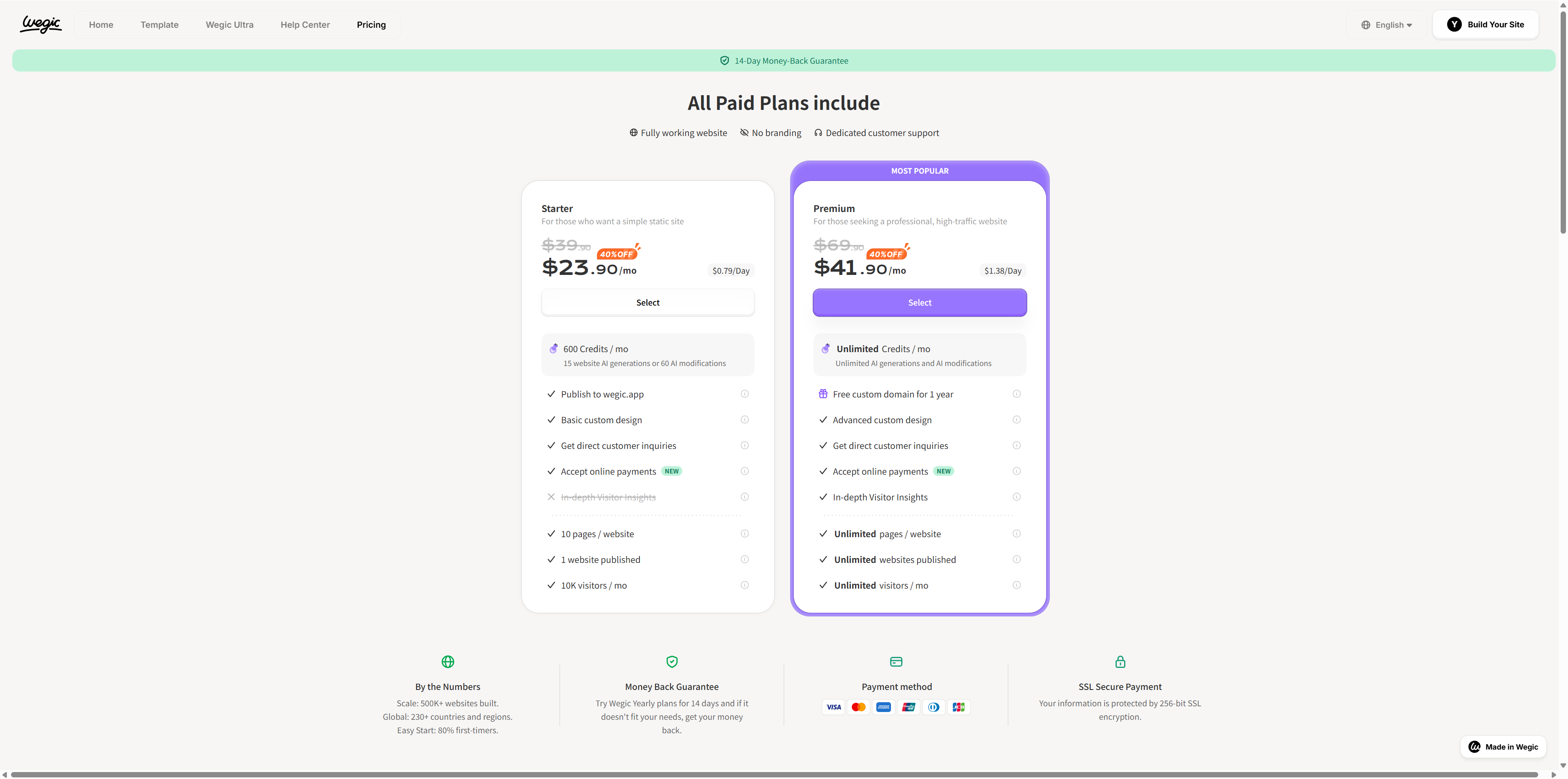 价格:新客户在 Wegic 上获得 70 个免费网站创建积分。现在有 3 种定价计划可供选择:入门计划、高级计划和 Wegic Ultra,订阅费低至每月 23.9 美元。
