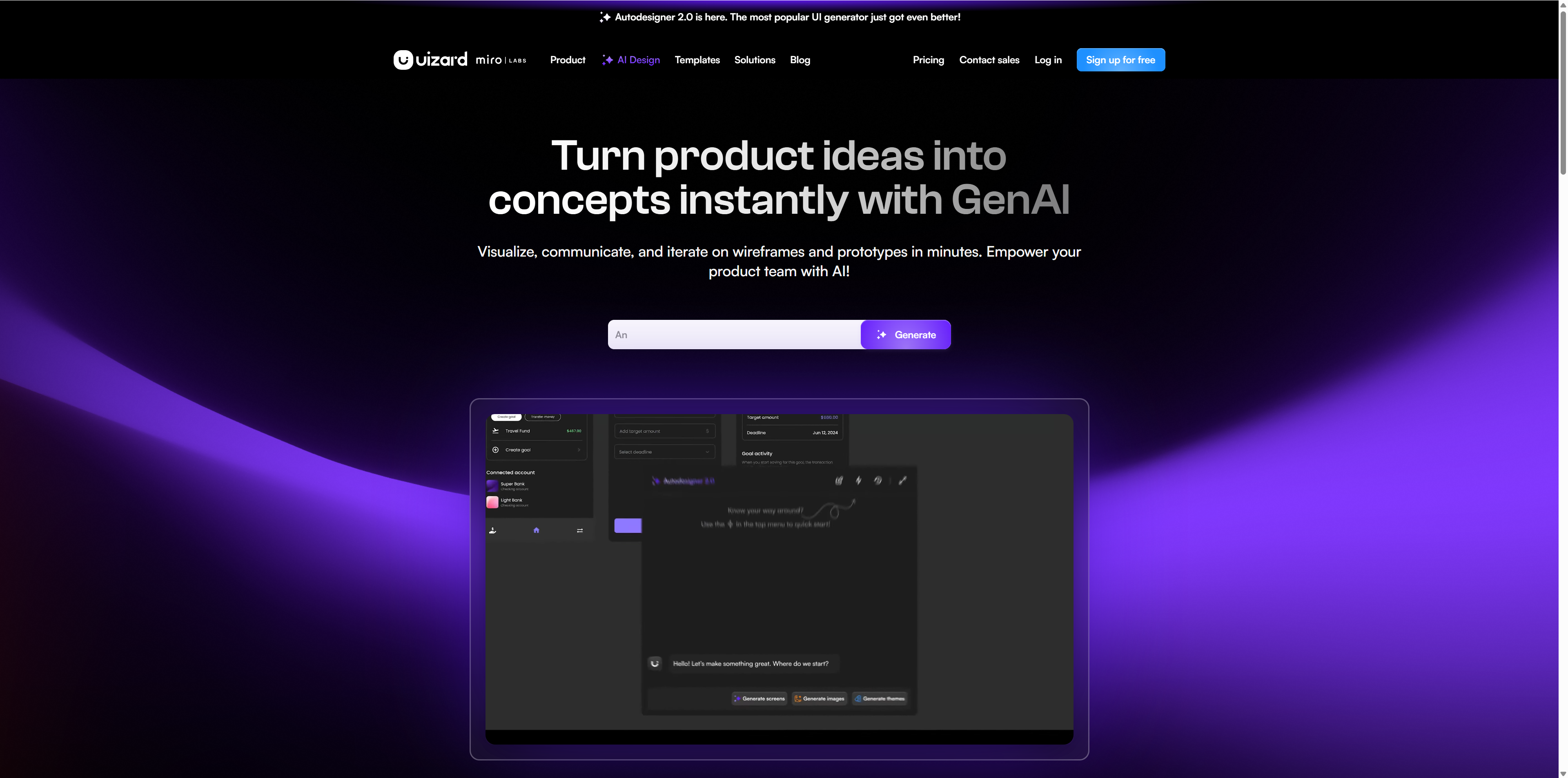 是 Framer 平台上的 AI 扩展工具,同时作为一个高保真原型生成器,目标是把高质量交互原型与视觉设计生成流程 AI 化,整合了设计与交互能力。