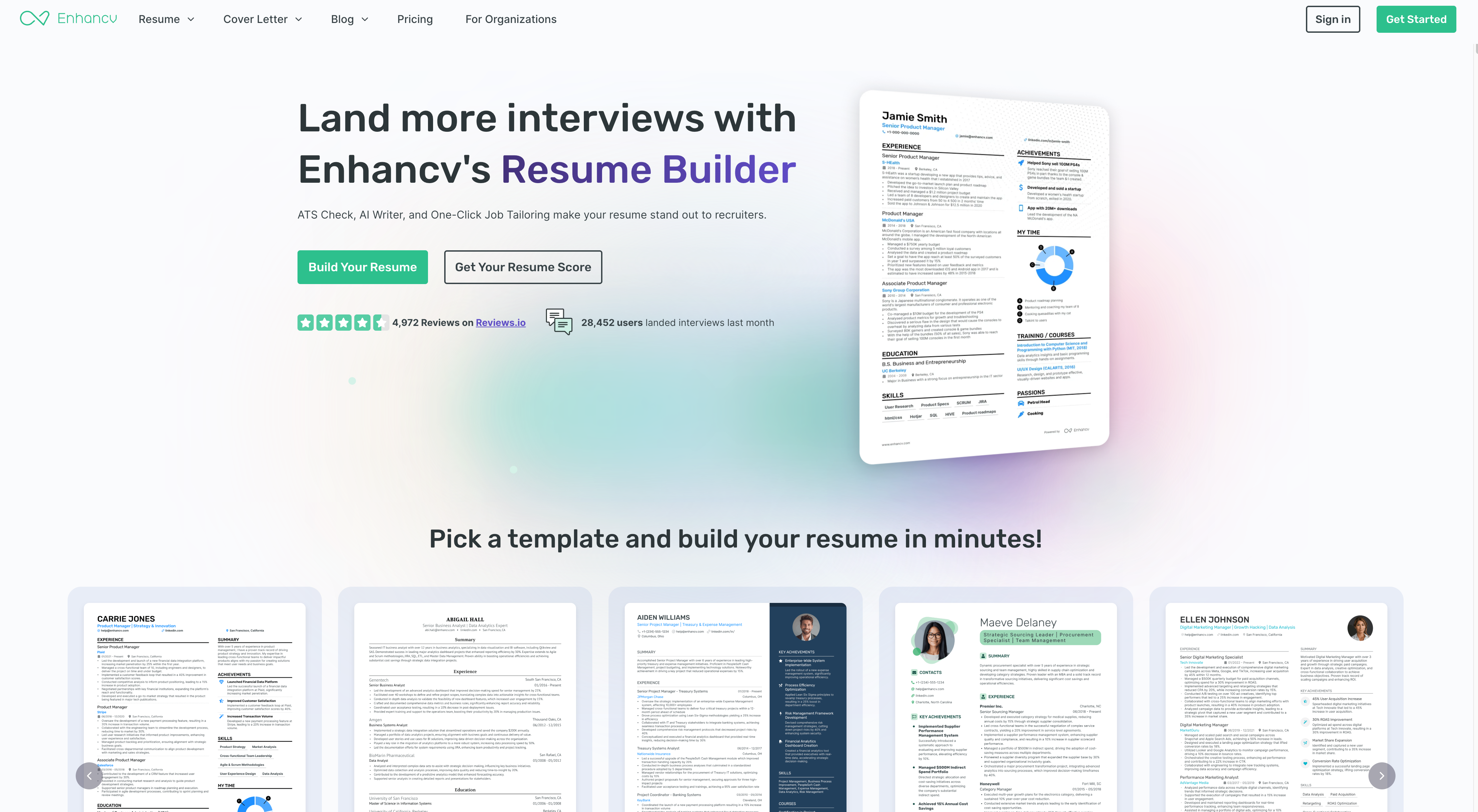 - 丰富模板库:有 40 多种由 HR 和设计师打造的 ATS (求职者跟踪系统)友好简历模板。