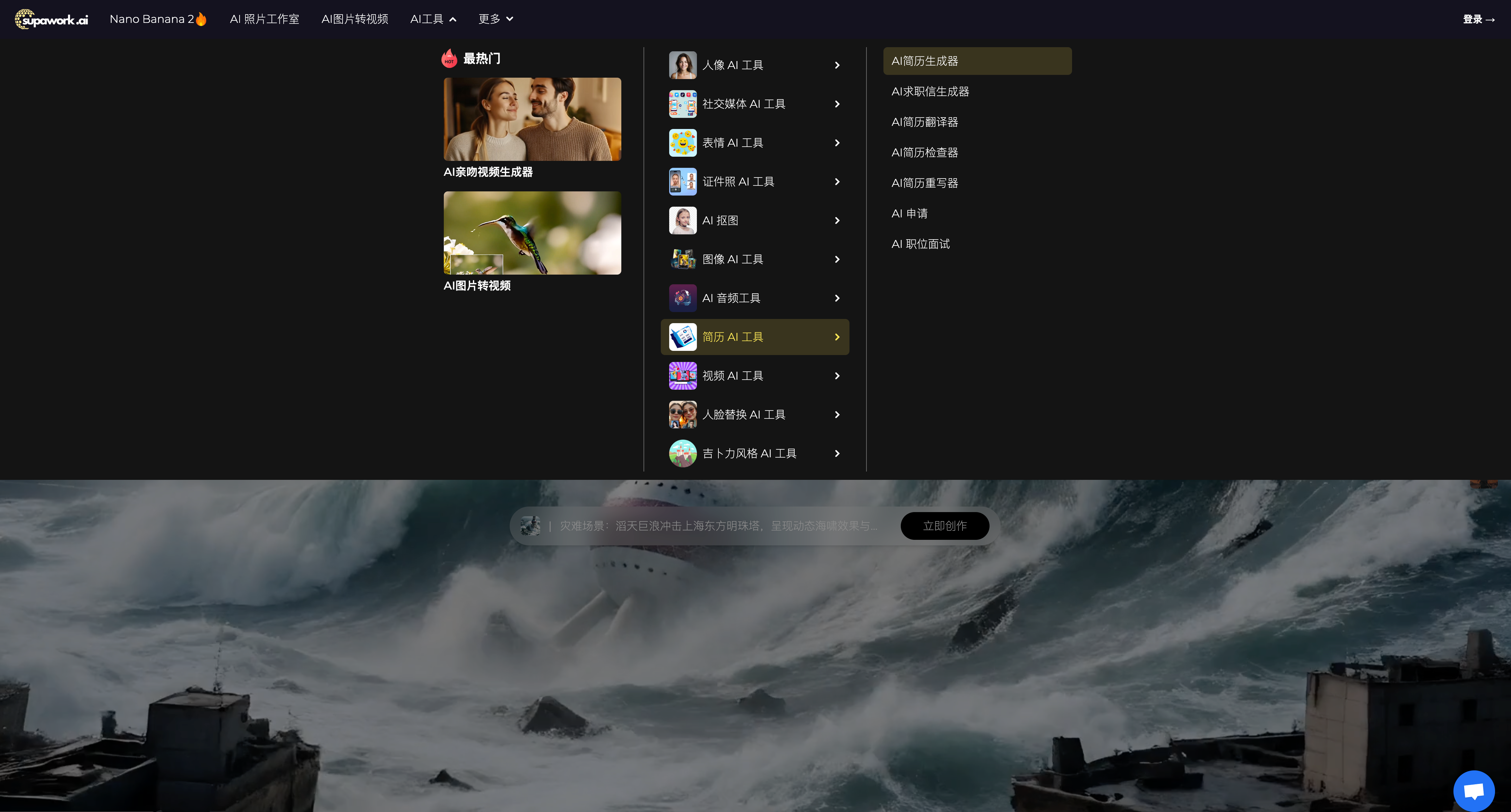 Supawork AI 是一个多功能平台,最初以 AI 简历生成为主,后来扩展到 AI 头像生成、视频制作等多个方向。