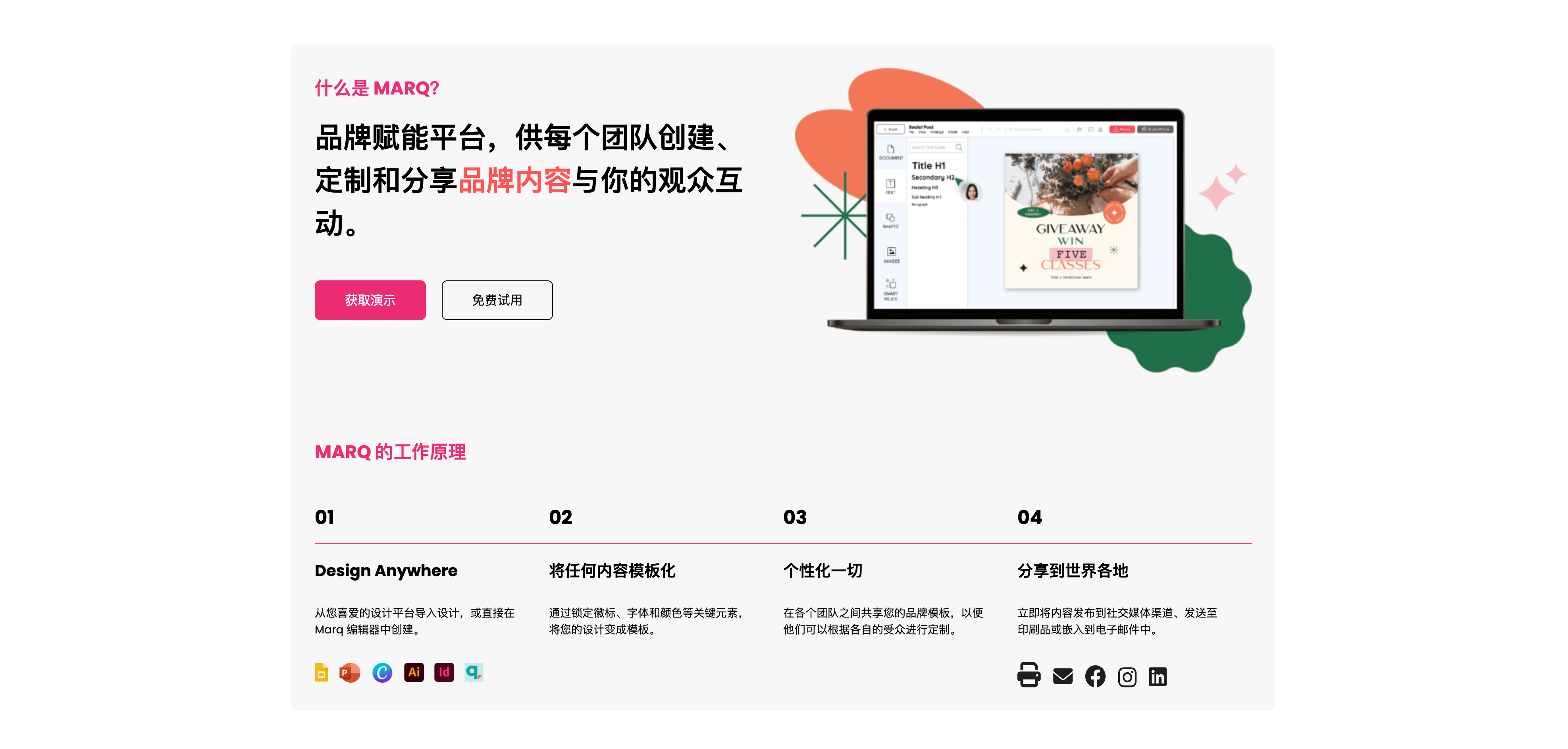 适用场景:对于企业或品牌团队需要统一视觉风格、进行批量宣传册 / 画册制作,Marq 是很好的选择。