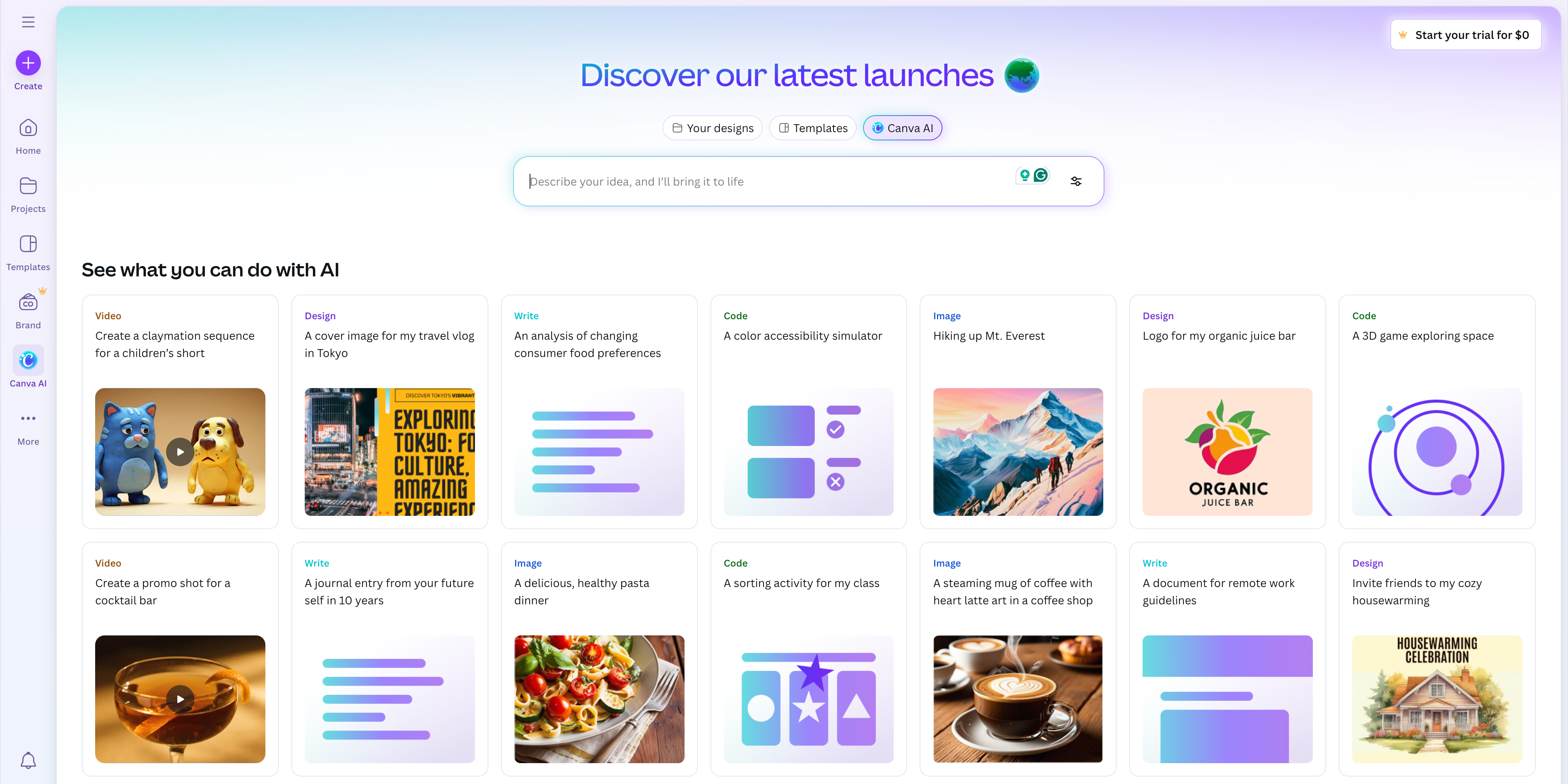 价格:Canva 提供免费计划,免费用户可以使用大量模板和素材;付费版则解锁更多高级素材、存储空间与导出选项。