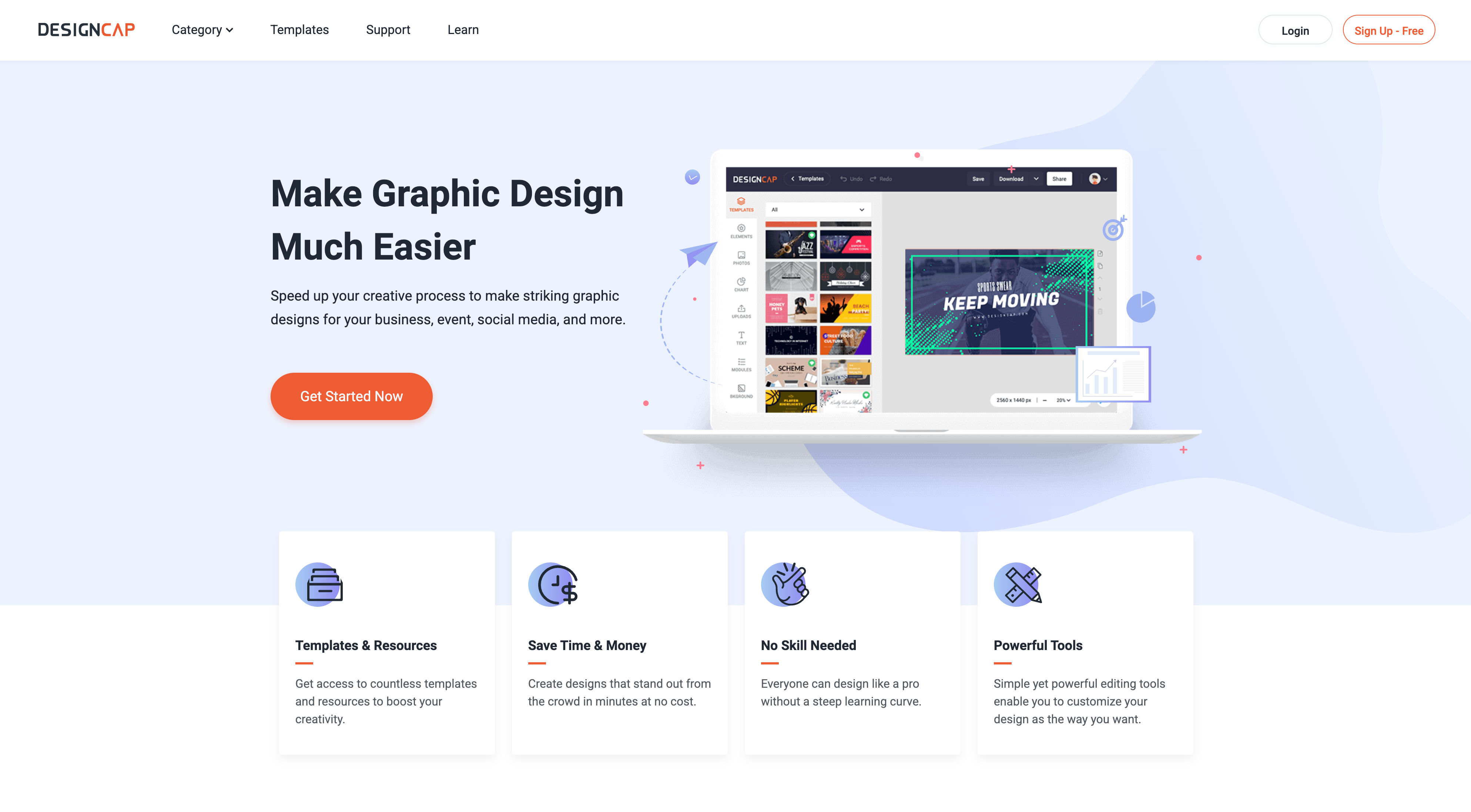 DesignCap 是一款专注于轻量平面设计的平台,适合制作海报、传单、宣传册等。