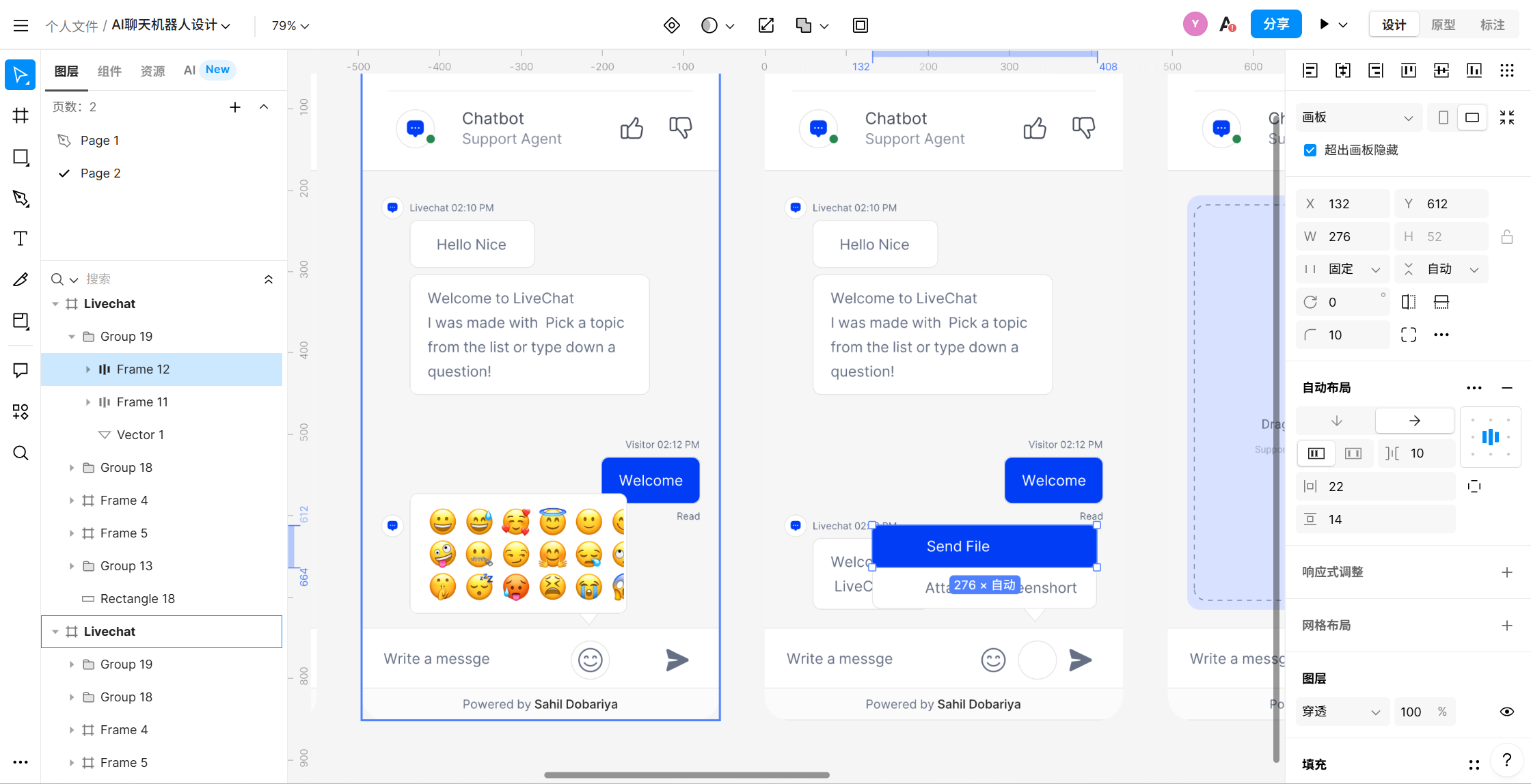 - 样式和主题管理:即时设计允许你定义一致的气泡样式、时间戳格式、输入框风格,并在多个聊天界面项目间复用,保证视觉与交互一致性。