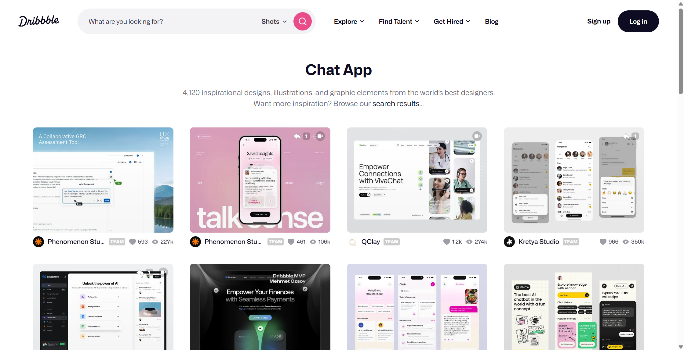 Dribbble 是面向设计师的展示社区,拥有大量高质量聊天界面原型、动效与概念设计。
