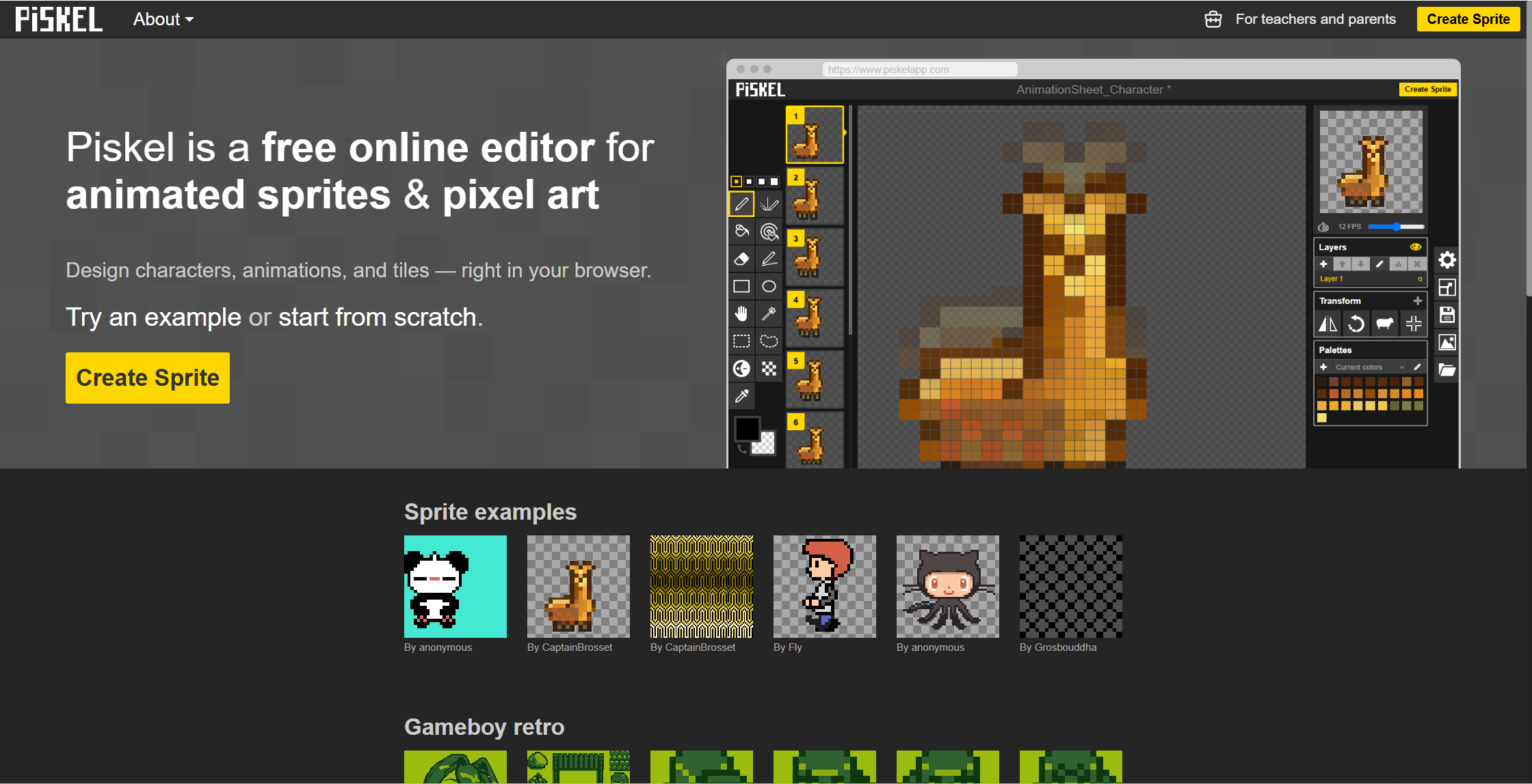 Piskel 是一款基于浏览器的免费开源工具,适用于像素图绘制、动画及简单的图片转换成像素图操作。