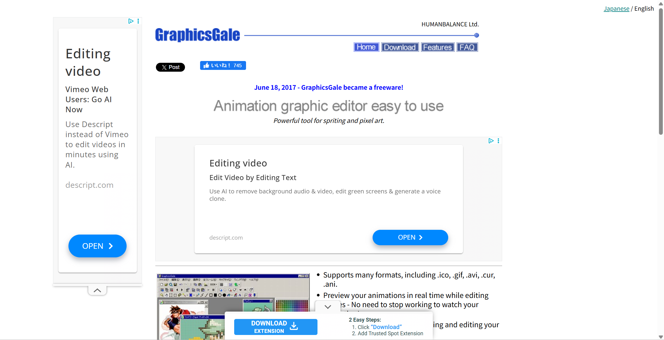 GraphicsGale 是一款专为像素艺术与动画设计的 Windows 软件,自 2017 年起其基础版为 freeware。