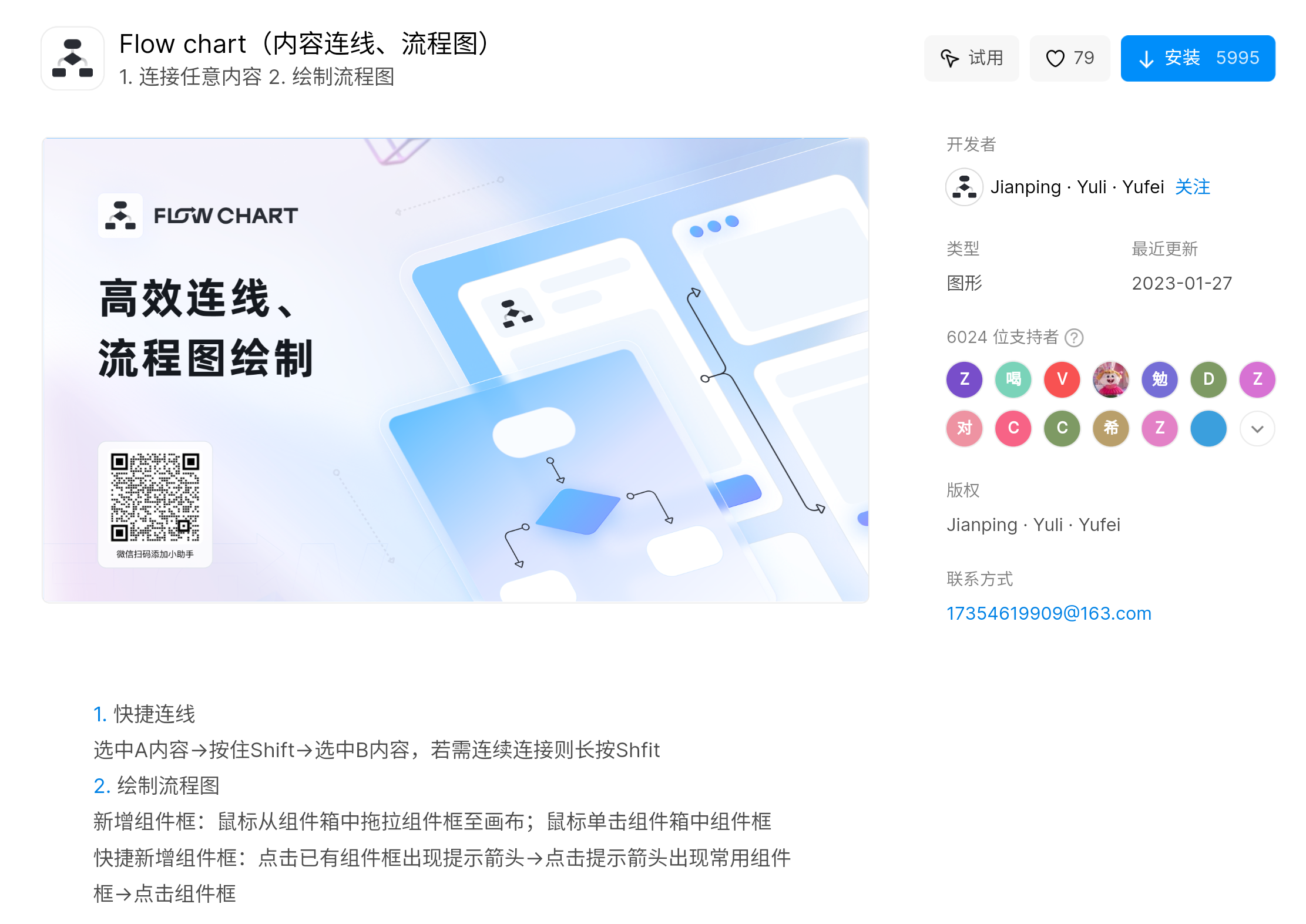 画流程图的插件 Flow chart 用 Shift 选中两个内容,就能完成内容连线,新增组件框创建流程图,有将近 6000 人都在安装使用,能帮助大家更快的完成流程图一键生成。