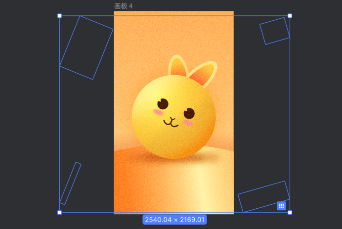 - 在画板 4中将四周的文本移动到画板外侧(使用方向键移动,保证图层还在画板内)并旋转角度(可参考左侧示意图)