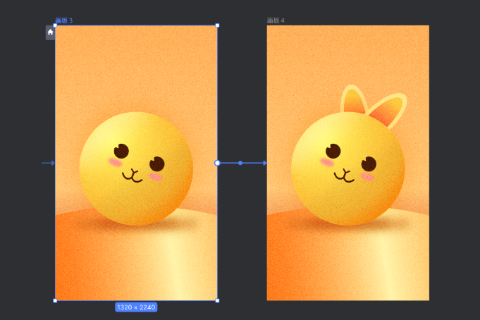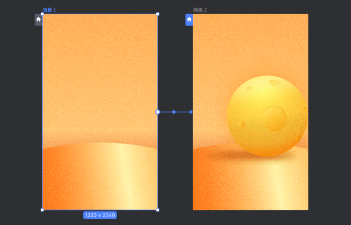 - 选中画板 1,右上角选择原型,与画板 2 做连接,添加交互效果