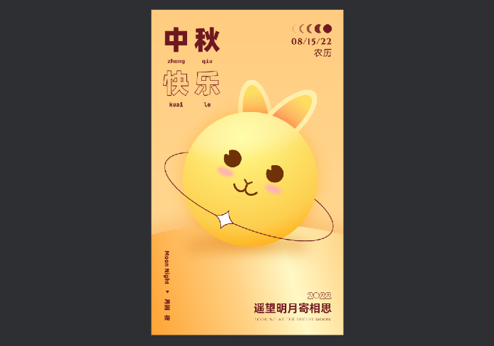 - 绘制一组脸部表情,可放置到月球中(为后期动效做准备,可使用提供的素材)