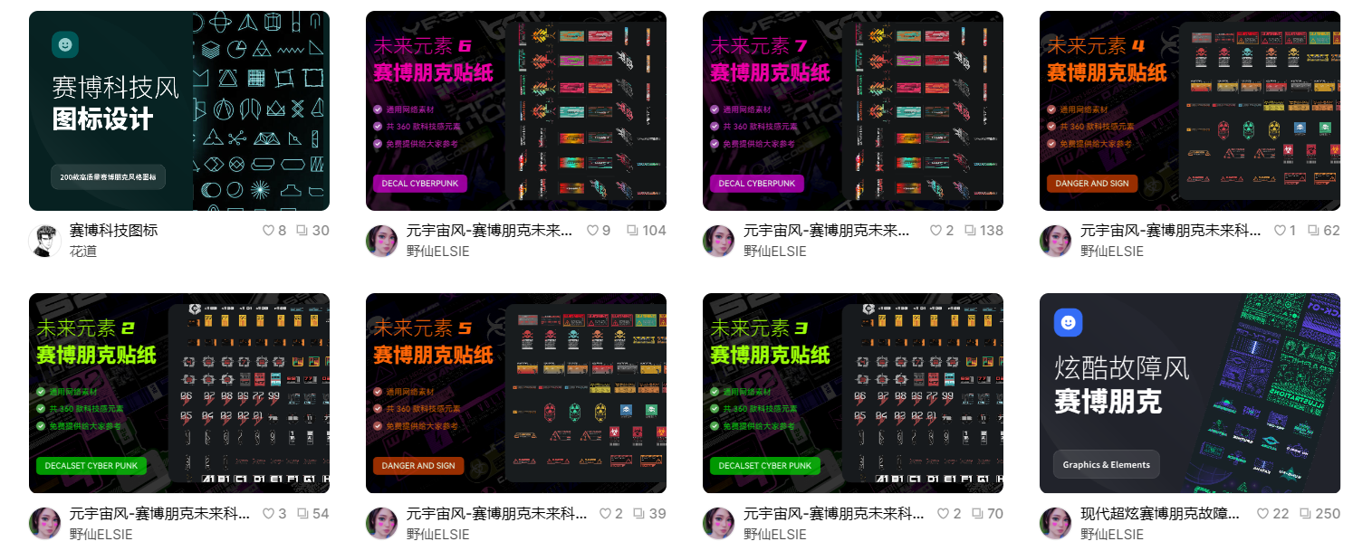 Freepik 是一个综合性素材共享平台,能够为用户提供各种免费和付费的插画贴纸素材,通过关键词搜索功能也可以筛选出相关的赛博朋克插画风格贴纸,然后再根据个人需要进行更进一步的选择。不过需要注意,这个网站中的资源并不都是商用素材,使用前需要设计师们自行关注使用规则,以免发生版权纠纷。