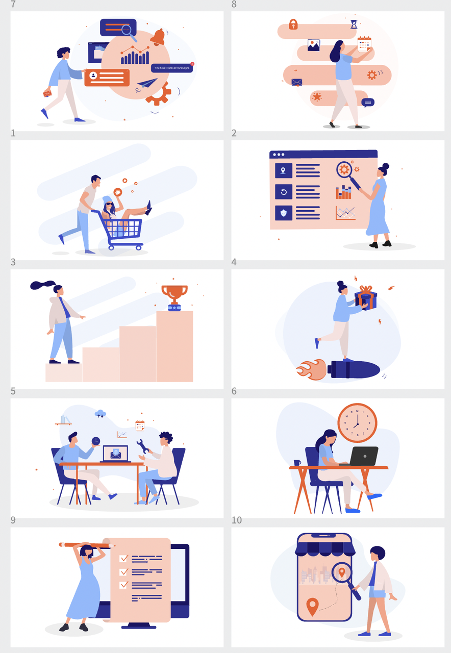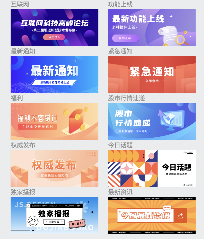 你可以选择不同的设计风格办事,可以使用现成的封面模板,可以使用免费的营销插画甚至是扁平风格 3D 风格都可随意取用。
