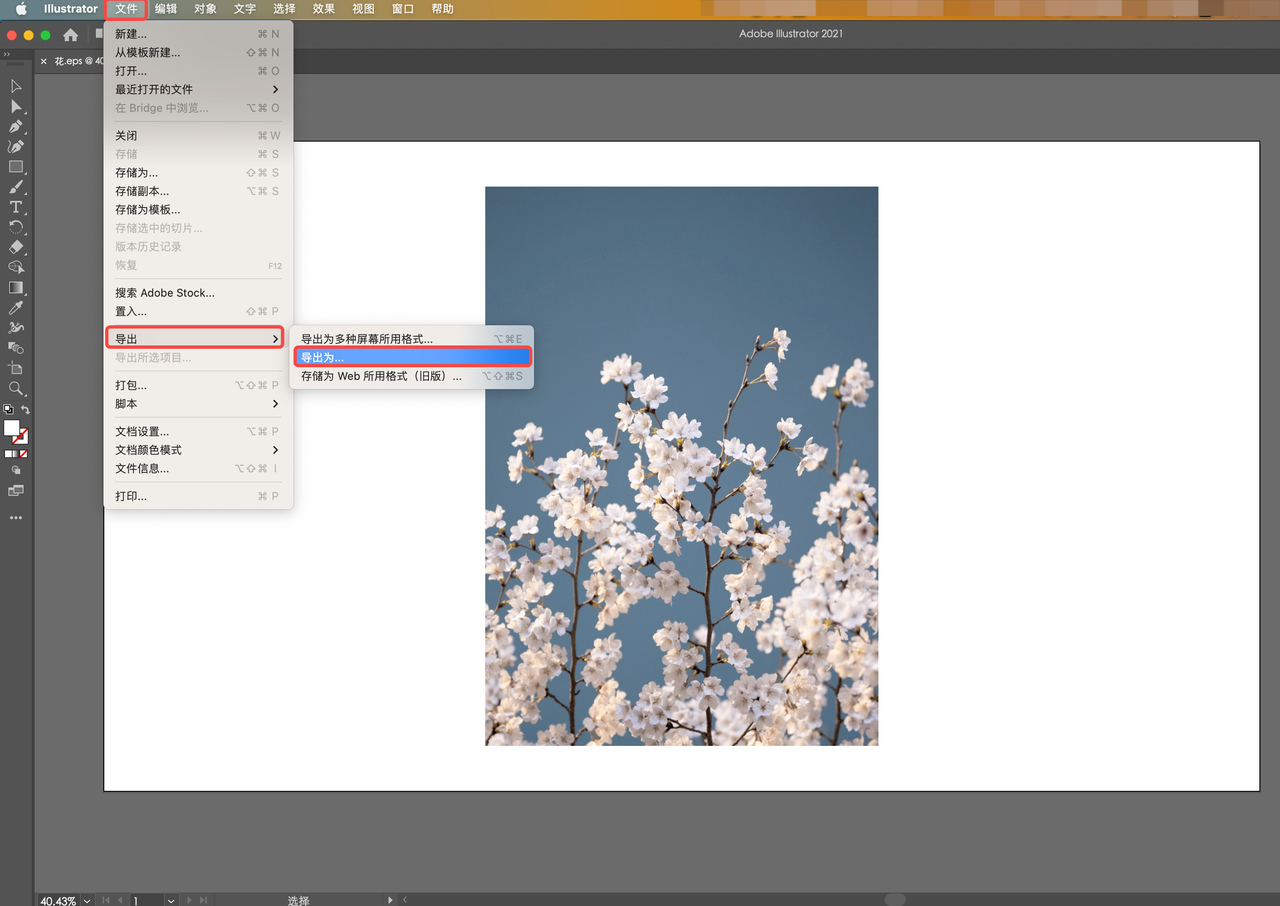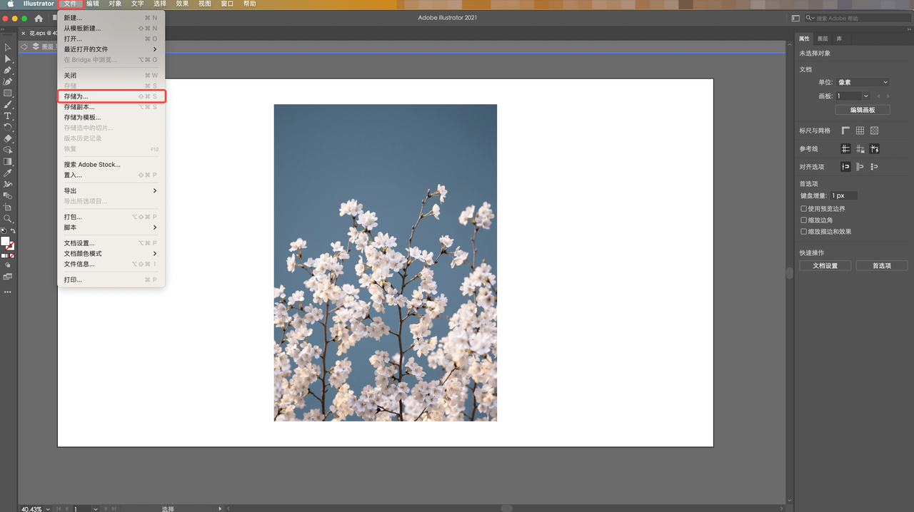 在Adobe Illustrator软件中,点击“文件”菜单,选择“打开”,然后找到需要转换的 EPS 文件并打开它。打开后,我们可以看到 EPS 文件的图像和一些相关信息,说明我们已经成功打开了该文件。