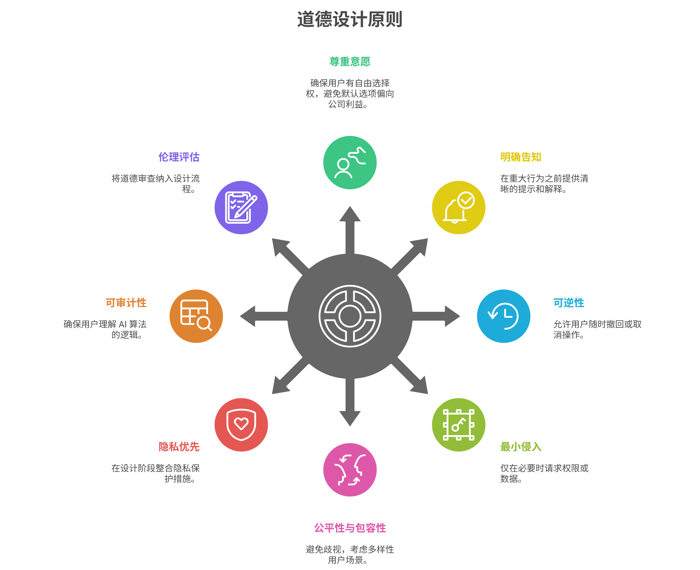 伦理评估流程:将道德设计审查纳入设计流程,就像 QA 审查、可用性评估那样。