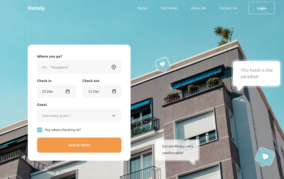 比如下面这个“酒店预订移动端网页设计模板”,先是使用饱和度较低的浅蓝色来塑造网站的使用氛围,而后通过白色蒙版进行功能提醒,给予用户舒适的使用体验。