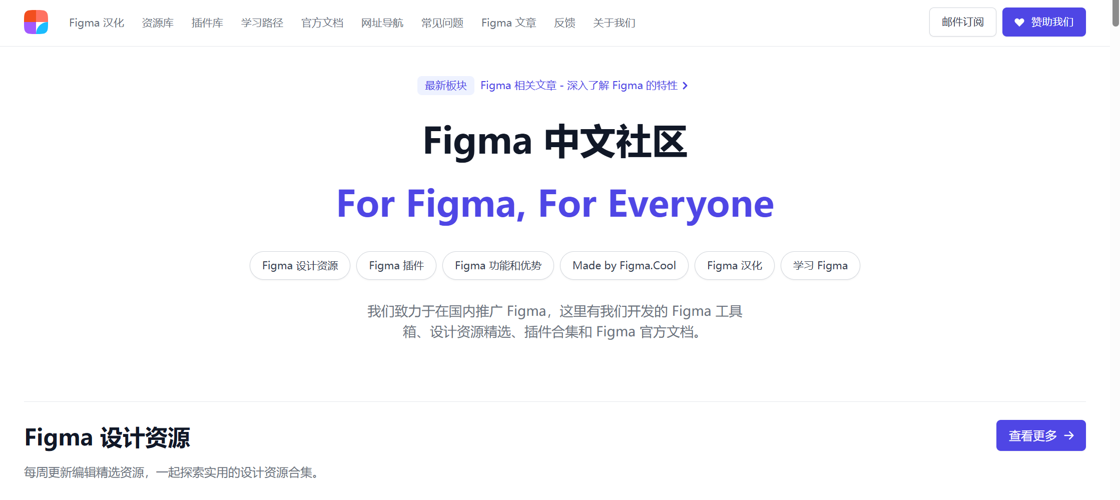 其在官网中也说明了这一点, 在这个社区里有他们开发的 Figma 工具箱、有他们整理精选的 Figma 设计资源和 Figma 插件合集,以及 Figma 的官方文档。