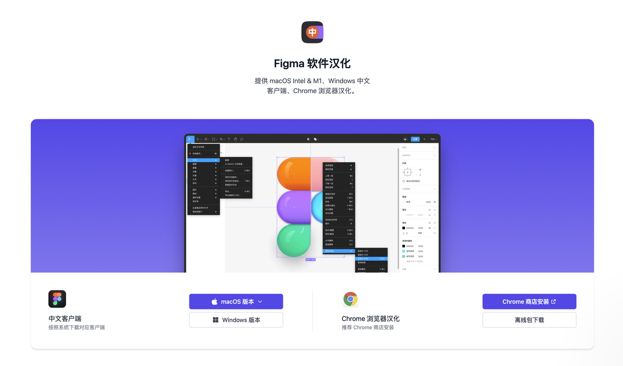 Figma.cool 汉化插件支持各个版本,提供 macOS Intel & M1、Windows 中文客户端、Chrome 浏览器的汉化。