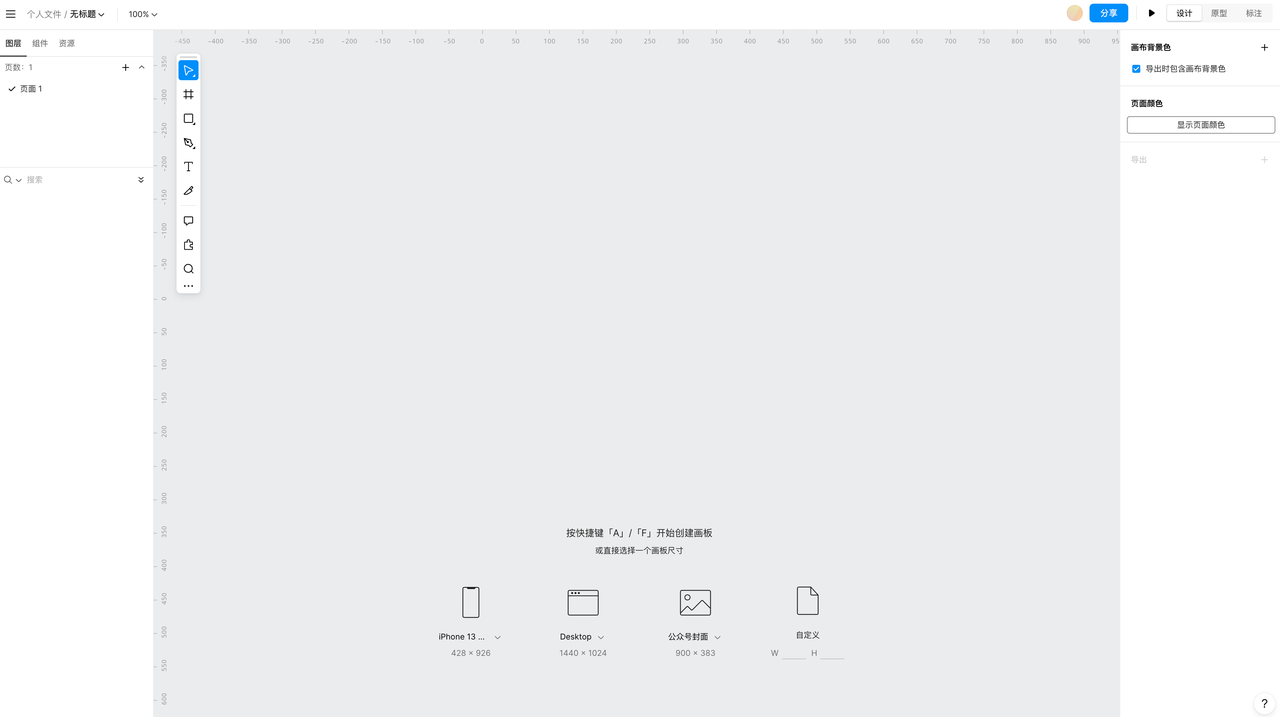 这个安装应该是很简单的了。不过 Figma中文社区的更新比较快,汉化插件有些新功能的中文翻译还没有来得及更新。如果你的英文不好但是又想要获得 Figma 的体验,那就推荐使用国产的 UI 设计软件 —— 即时设计,在功能和体验上媲美 Figma中文社区。但可能一说国产,大家就要皱眉,事实上,就像许多国外的人使用 中国人开发的 Sketch 插件等,认真做产品的国产软件也是真实存在的,抛弃偏见或许能够收获更多惊喜。这个是他们的操作界面,很清爽,功能齐全。