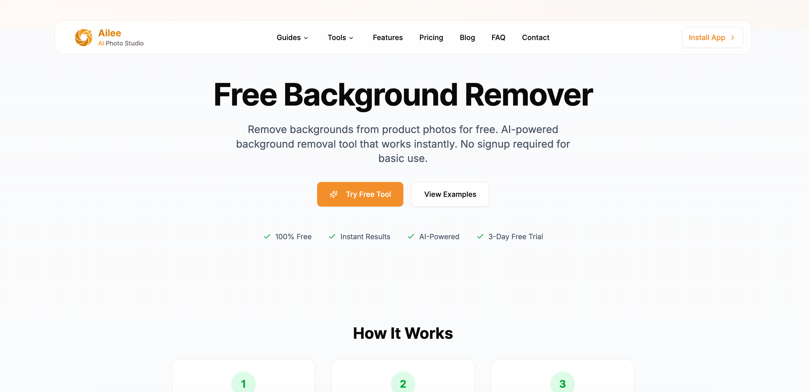Ailee.ai 提供一个专门为商品照片设计的免费背景移除器。根据官网介绍,这是一个 100 % 免费的在线工具,无需注册即可使用基础功能。