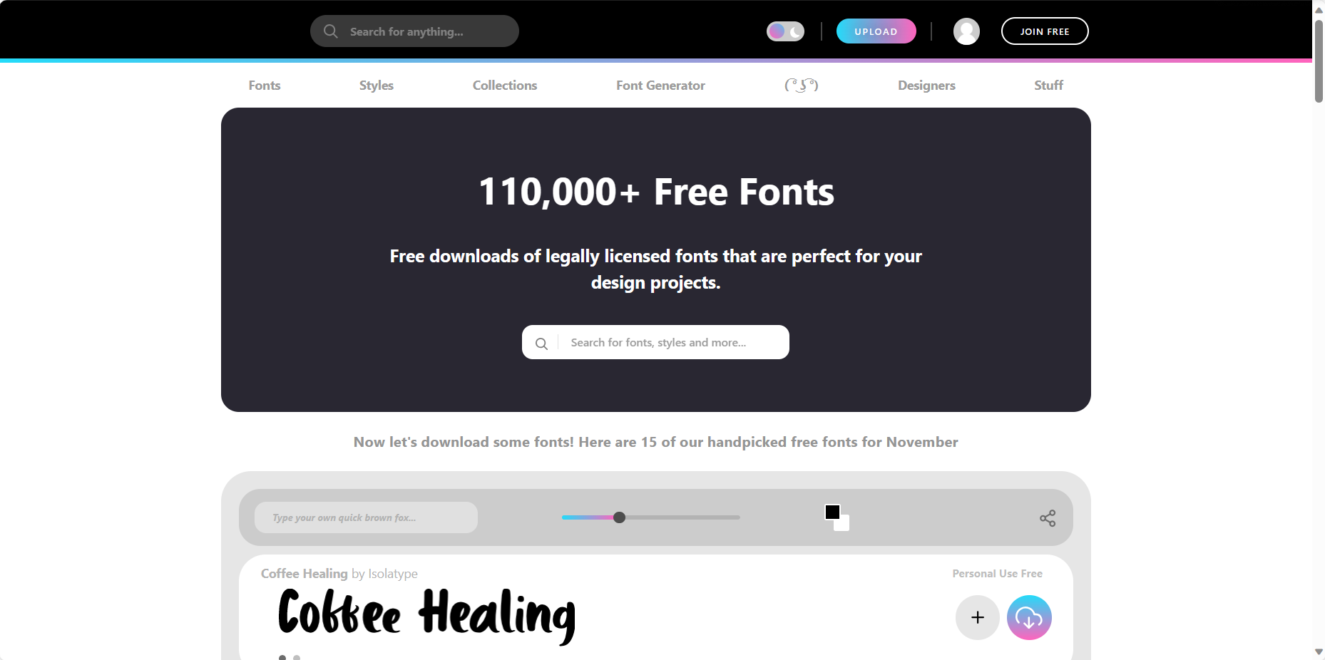 FontSpace 和前面的几款字体网站不同,它是一个社区驱动的字体下载网站,是通过字体创作的形式在社区中进行互动和交流分享,里面有非常多的创意和手写设计风格,非常适合极简风的设计作品哦!