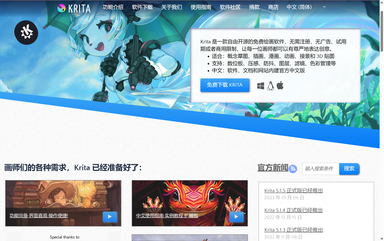 3、Krita:数字绘画、创作自由、操作简单的平面设计软件免费版