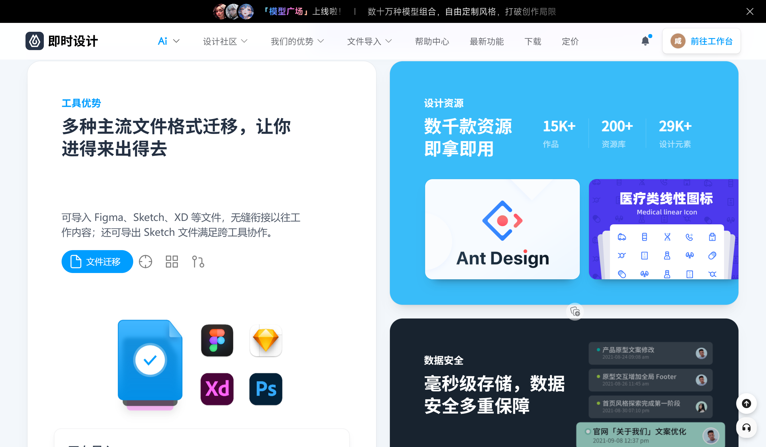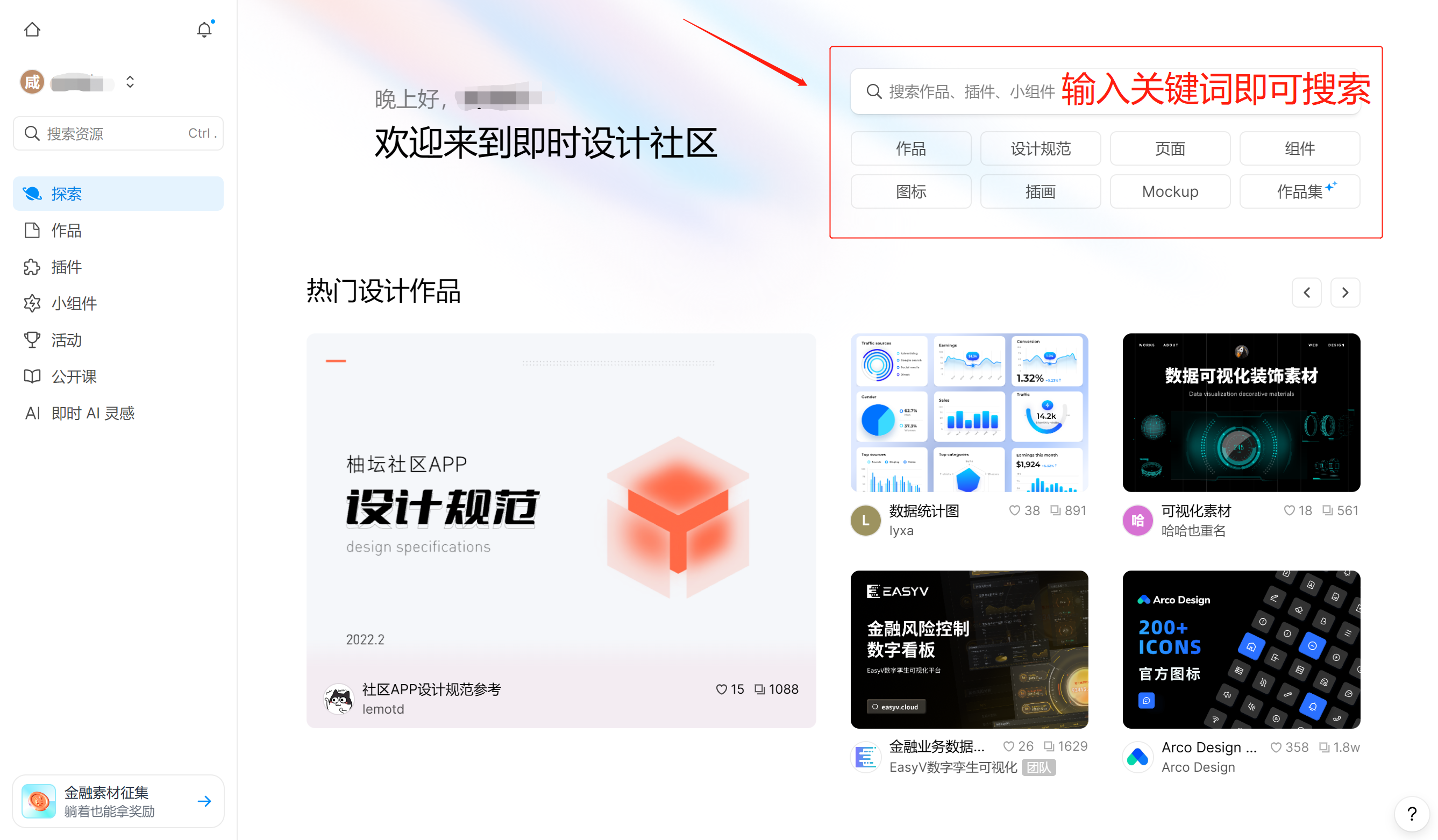 1、「即时设计」:素材多样、资源丰富、免费使用的 UI设计素材网站