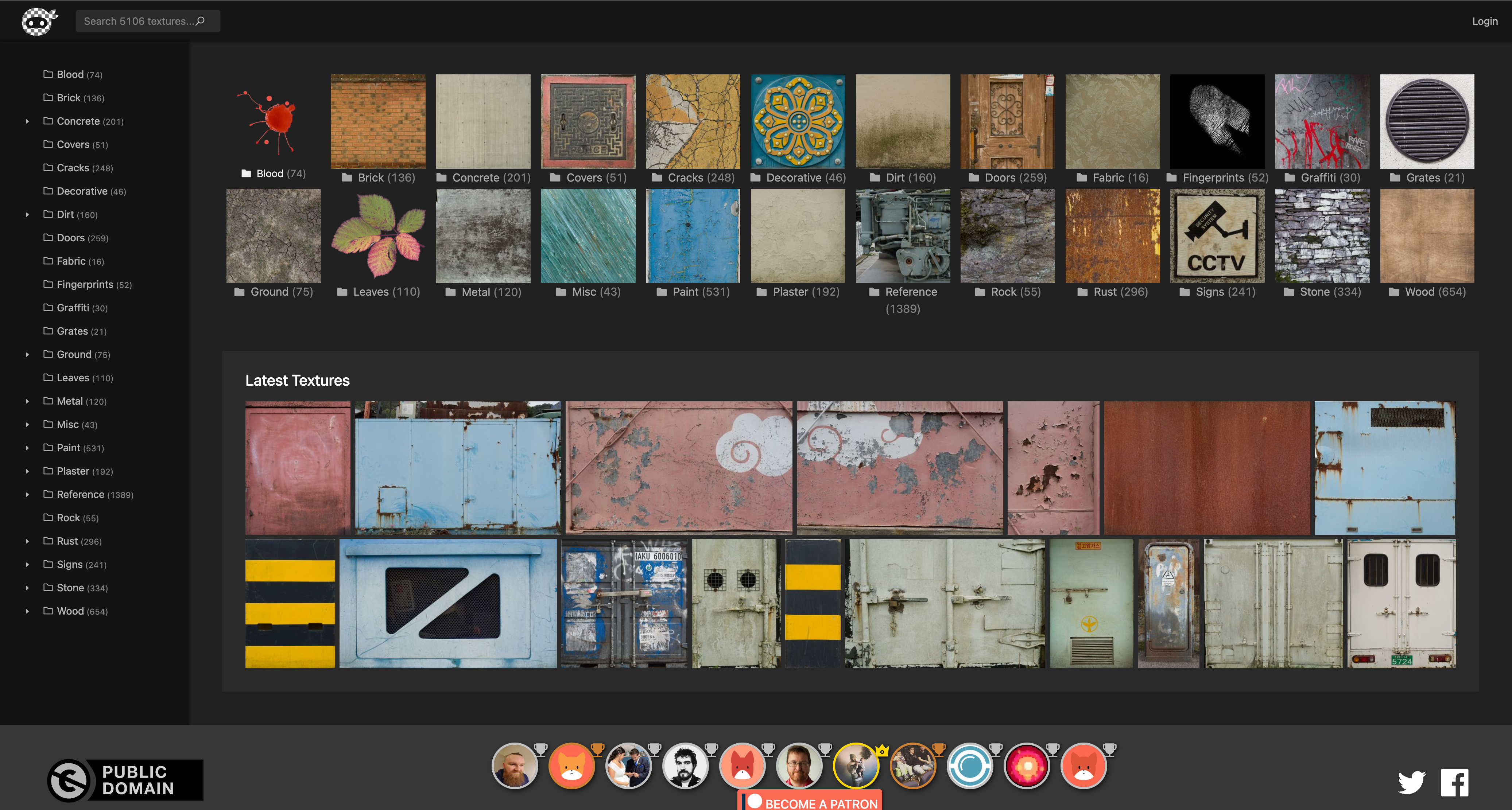 Textures.com 是最老牌的纹理网站之一,很多视觉、游戏与影视团队都在使用。