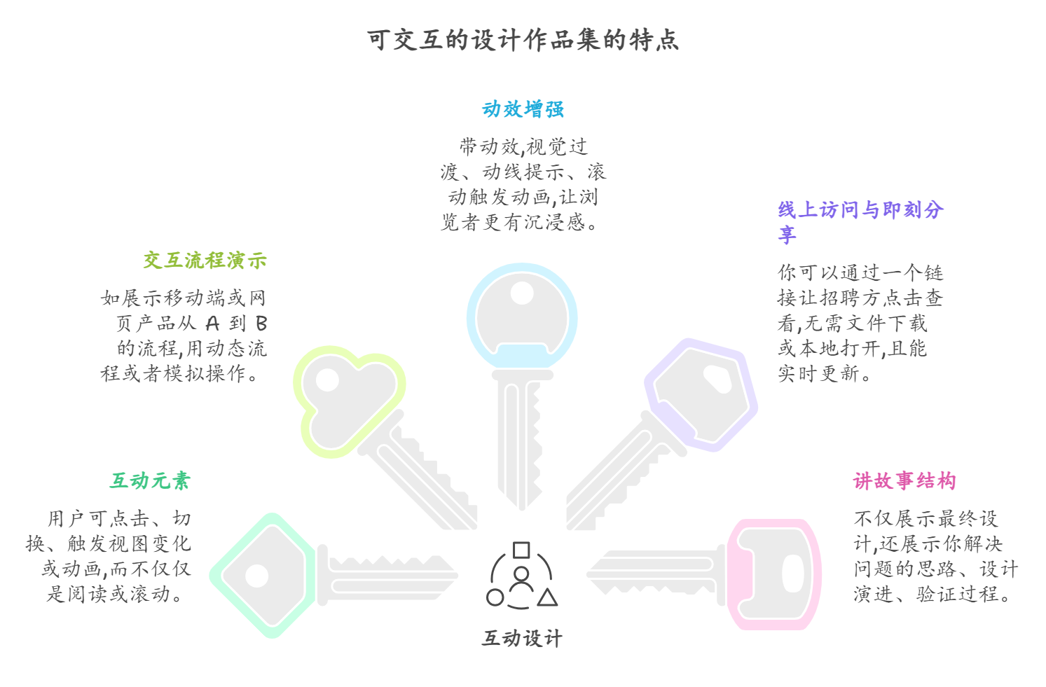一个可交互的设计作品集,是指一个线上页面或链接,包含以下典型特征: