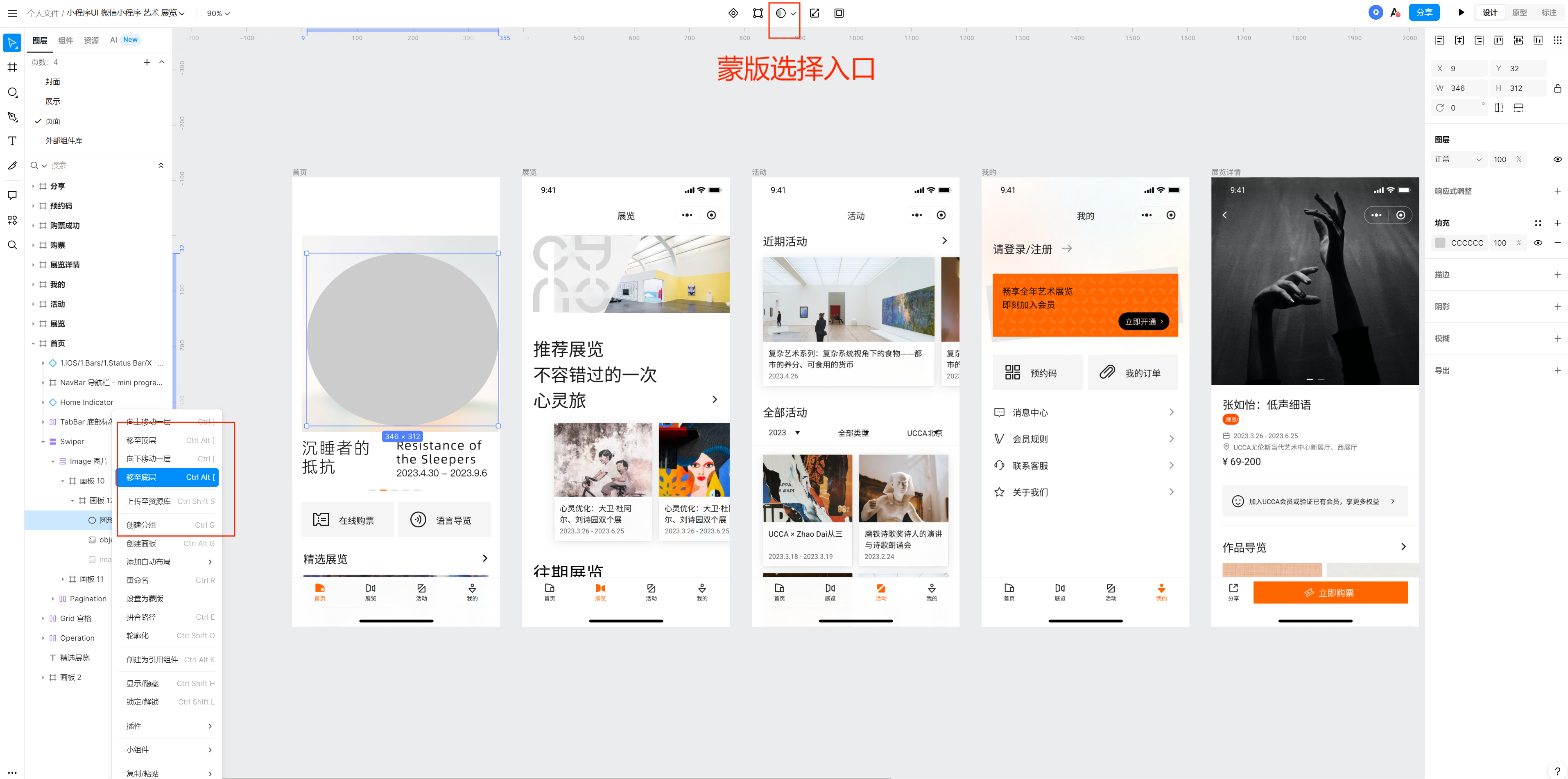 选择画板或图形:首先,选择你要应用蒙版的设计元素,无论是画板、分组,还是单个图形。