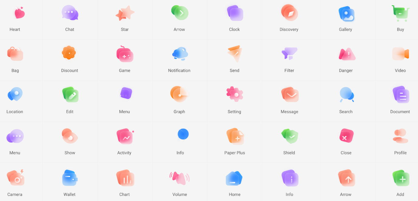 多彩毛玻璃图标设计风,当下非常流行的一种图标风格,在给设计带来亮点的同时保证了本身的简洁性,而且多彩的图标设计还能吸引用户注意力,给使用者一定的提示感。图标本身也有相应工具的特色,UI 设计必备!