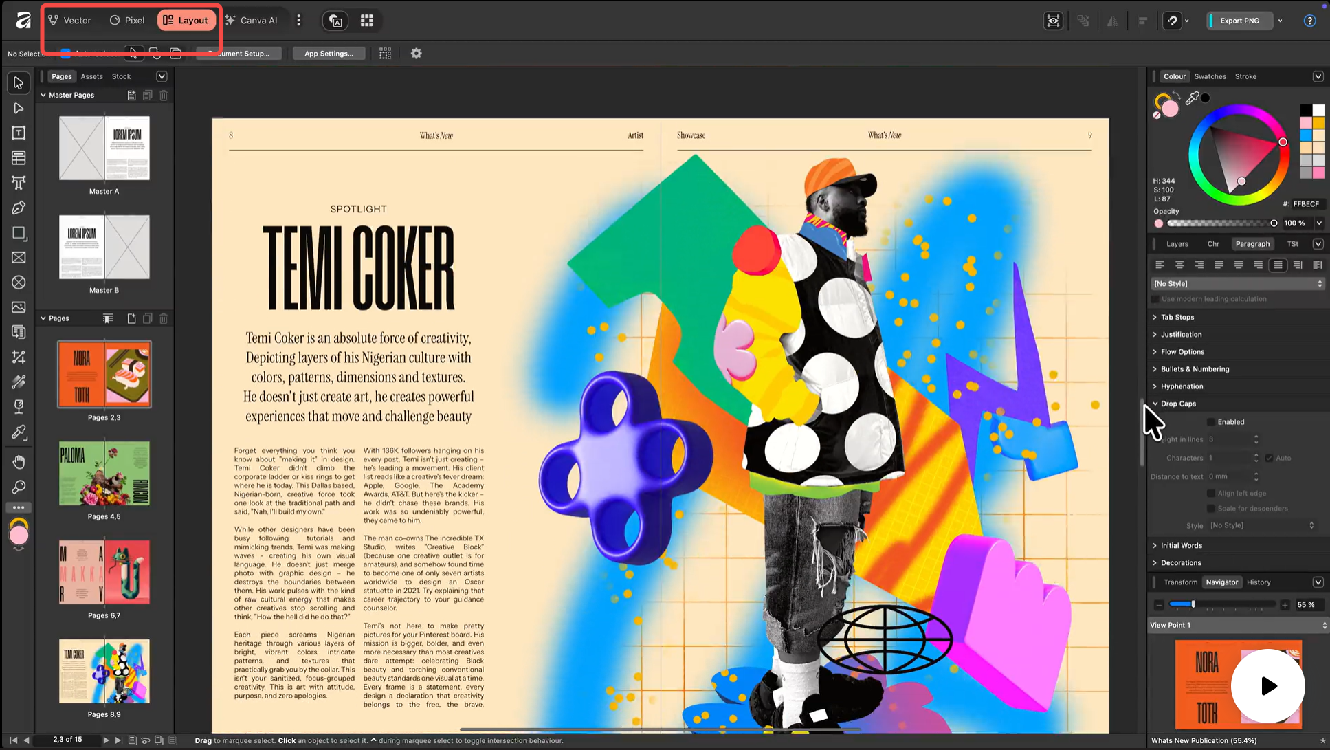 对于需要做视觉素材、网站设计等等的用户来说,Affinity的新版意味着你可以在一个环境下完成照片处理、图形绘制与页面排版,提升效率并减少软件切换带来的碎片化。