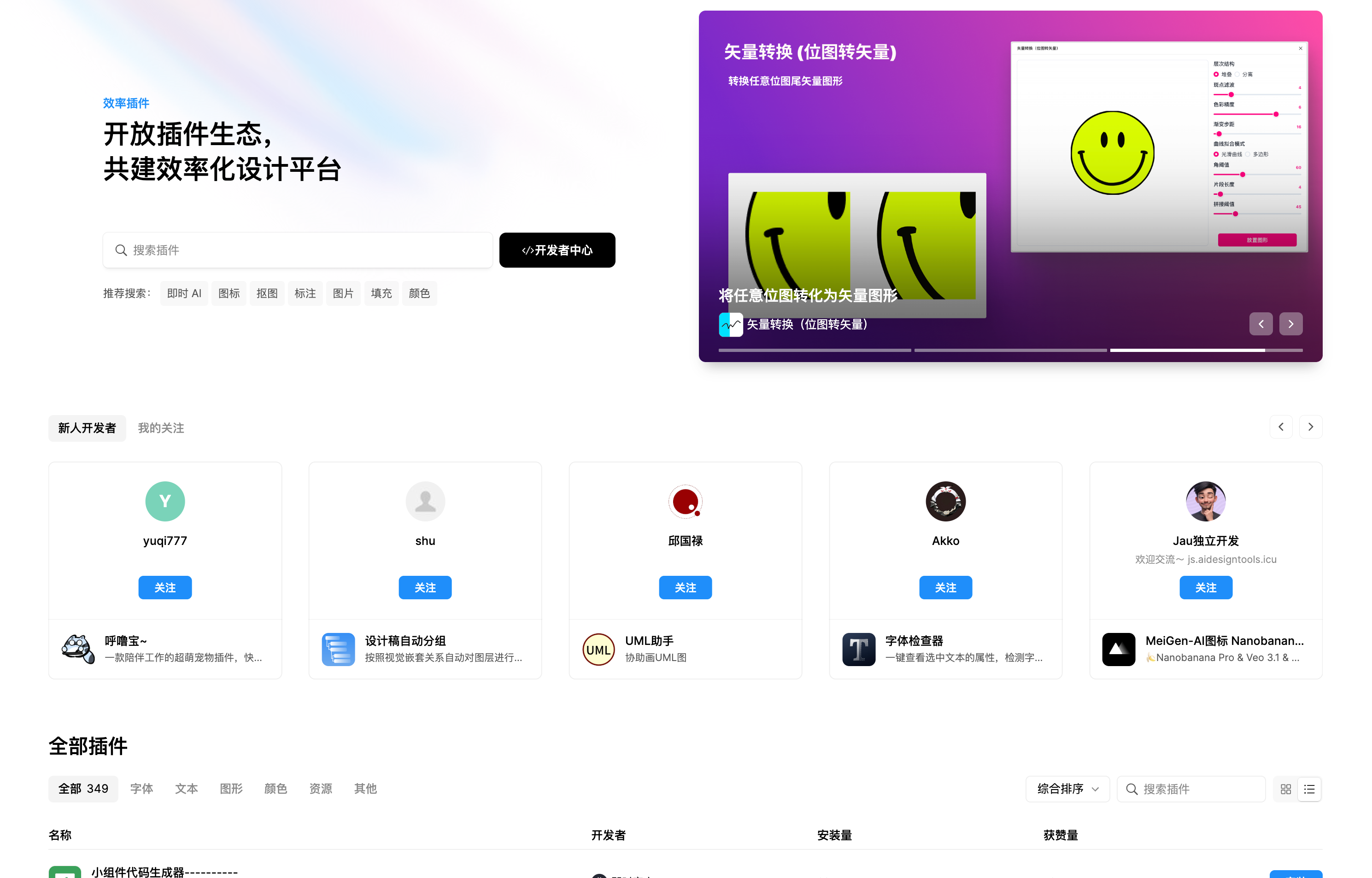 即时设计资源社区还包含了 340 + 个超好用的插件,这些插件能够满足设计师的各种需求,也是很多设计师到处寻求的资源之一,即时设计资源社区的插件数量算是国内设计工具中的佼佼者,用好插件对工作的提效是显而易见的。