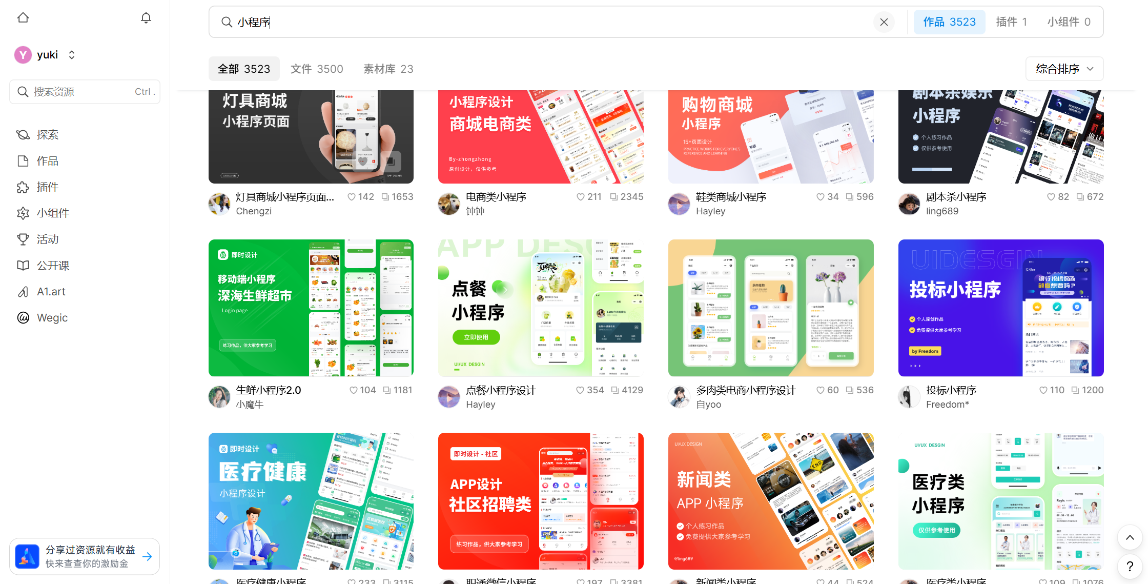 - 根据场景选用模板:在即时设计平台中找到对应的小程序UI模板。