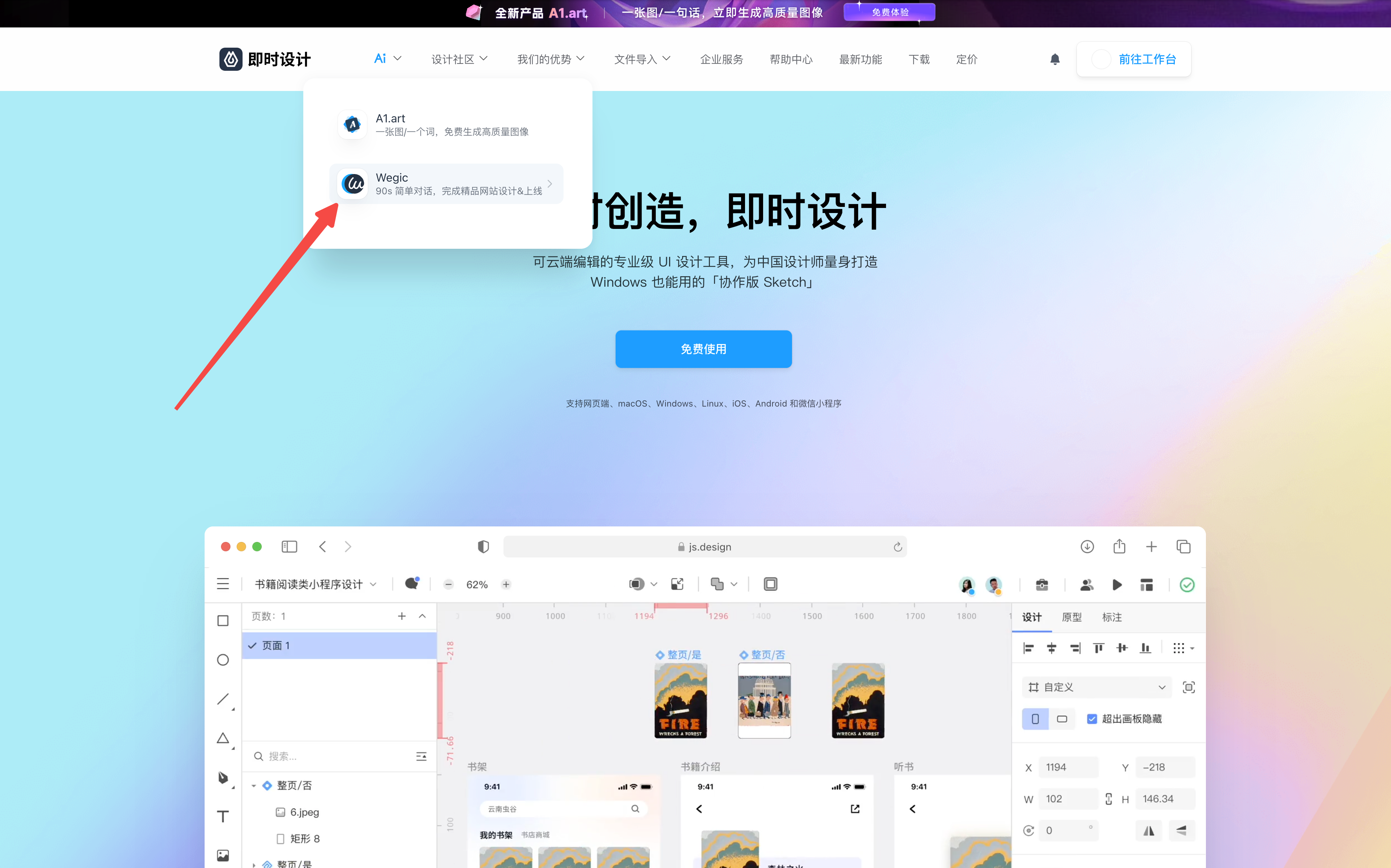 而且即时设计最近还推出了一个超酷的功能——Wegic,这是一个AI网页构建工具。你只需要用自然语言描述你想要的网站,Wegic就能在90秒内生成一个多页面网站。如果你把Wegic和n8n结合起来,可以实现"设计稿→AI生成网页→自动部署"的全流程自动化。