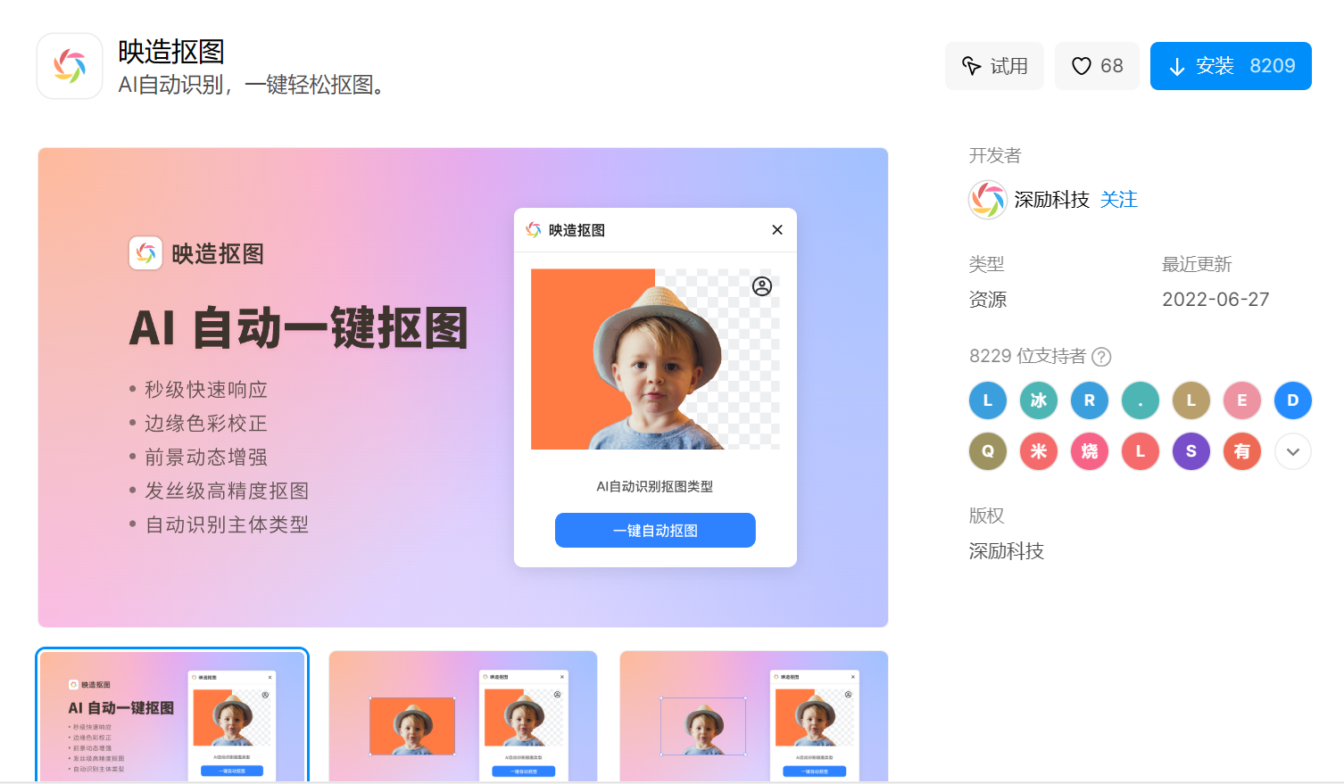 这也是一个使用起来快捷方便的在线智能抠图工具,它拥有秒级快速响应的能力,让你快速实现抠图。映造抠图工具最大的优势就是边缘色彩矫正,它可以实现各种高精度且复杂的抠图,并且自动处理图像边缘的毛边情况,让你的图像看起来更加真实。
