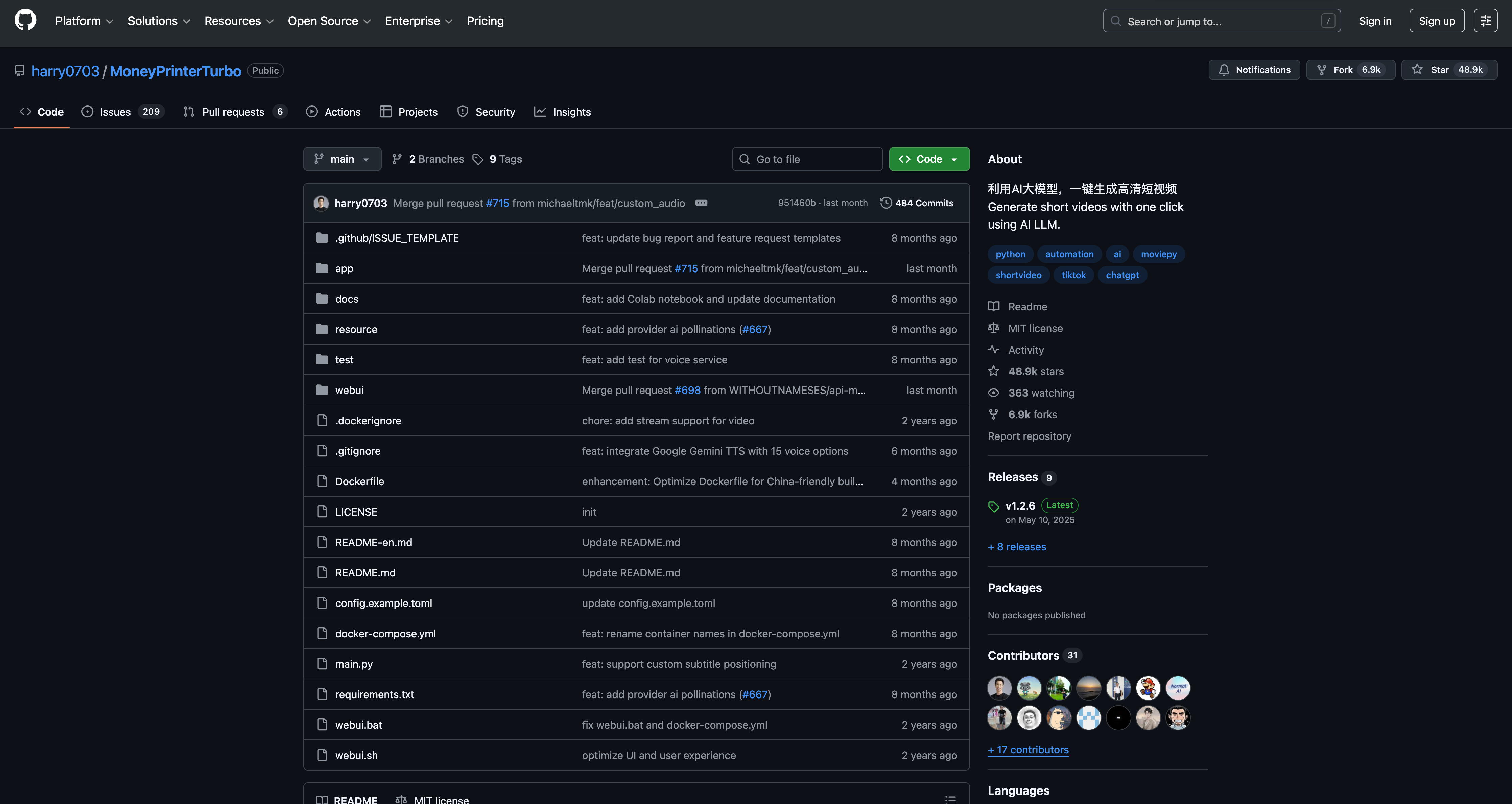 这个工具的名字很直白——"印钞机加速版"。开发者harry0703把它定位为"一键生成短视频",而且确实做到了。