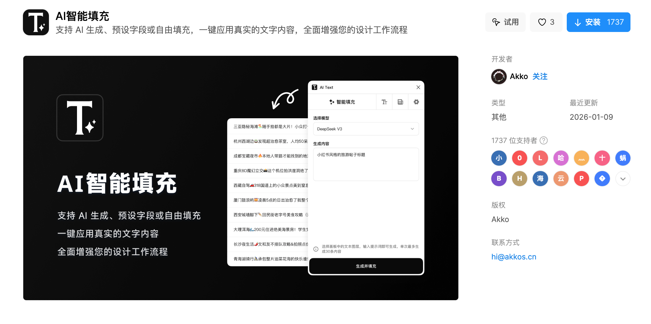 即时设计是一个专业的UI设计工具,关键是它有强大的AI插件生态。比如它的"AI智能填充"插件,可以快速生成符合品牌调性的文案和图片;"Refore AI帮你改"插件能一键优化视频封面图。
