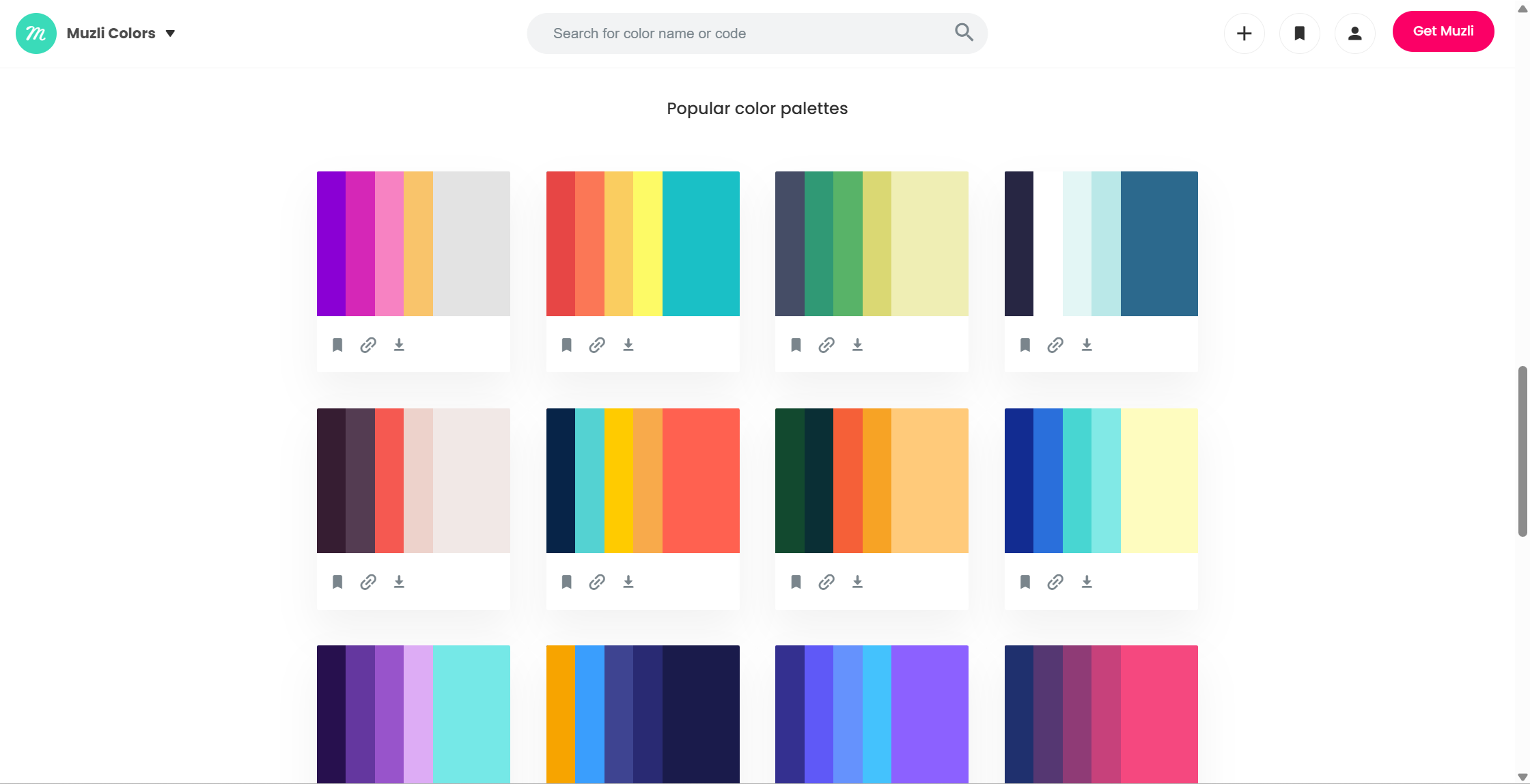 Muzli Colors 提供大量调色板及灵感库,是优秀的作品集颜色搭配辅助工具。