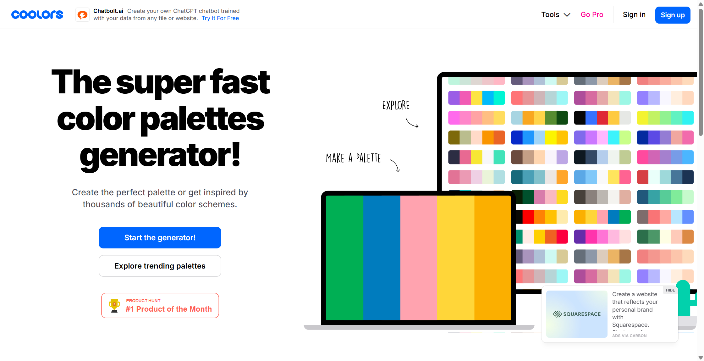 Coolors 是一款在线配色生成工具,能够快速生成和锁定调色板,适合集合灵感和快速试色。