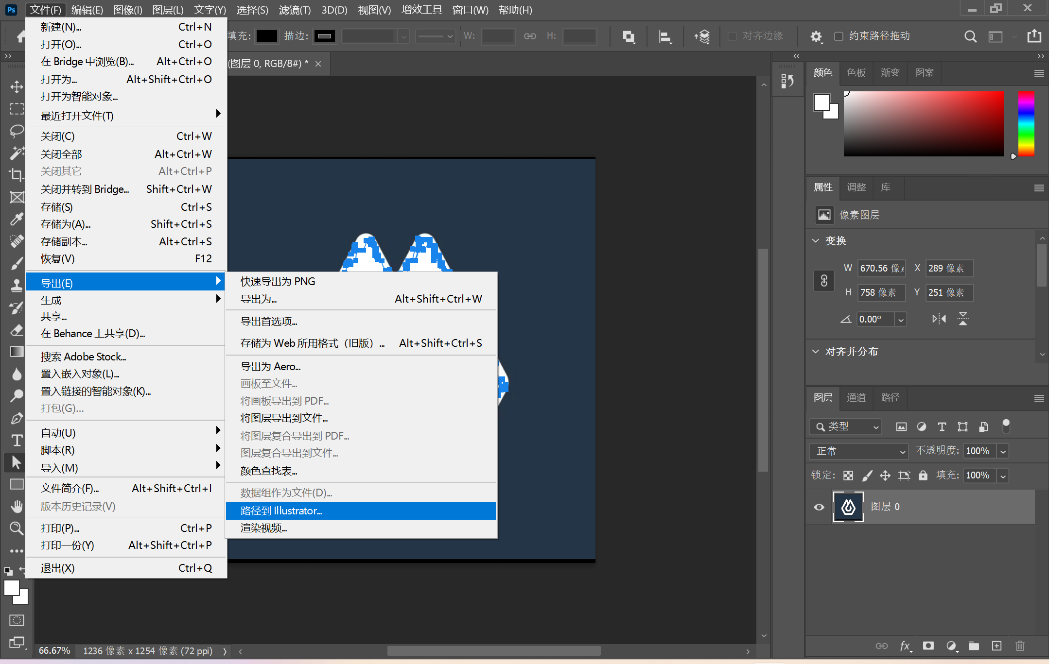 第五步:点击左上角文件-导出-选择路径到 Illustrator ,保存图片即可完成位图到矢量图的转换。