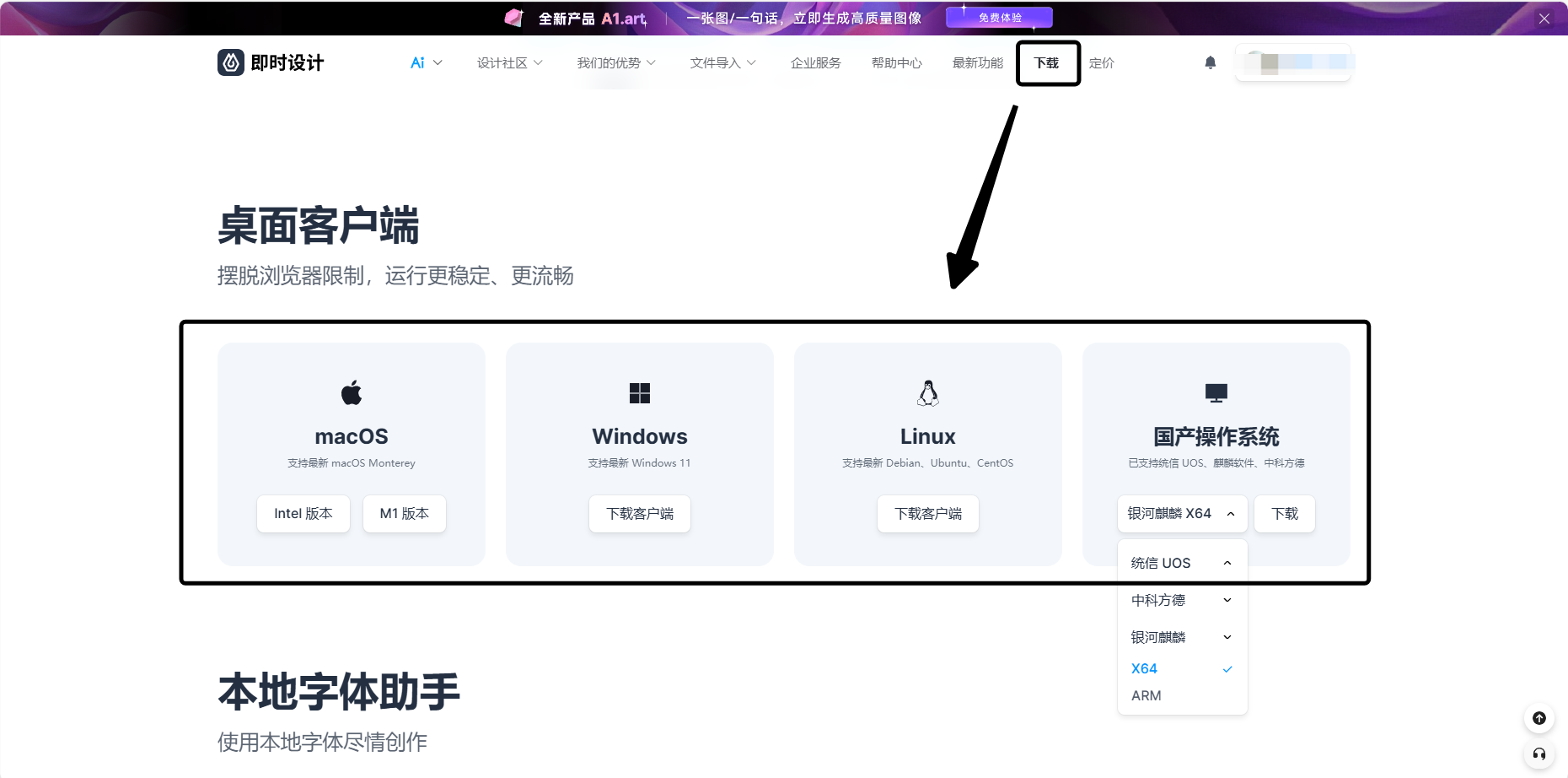 第二步:选择你想要下载的版本,Sketch free version 支持下载 macOS、Windows、Linux、iOS、Android 等多个常用系统以及通信 UOS、麒麟软件、中科方德等国产操作系统,依旧秉持了在线版本的强适用性,能够为使用不同设备的用户都带来贴心的服务。