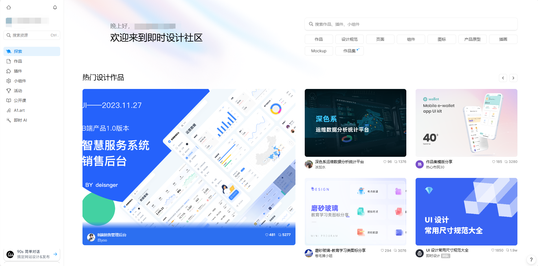 设计资源丰富免费:即时设计的资源广场里整合了大量设计师常用的的设计资源和工具,精美可爱的小组件、实用方便的插件、免费且高质量的设计模板。