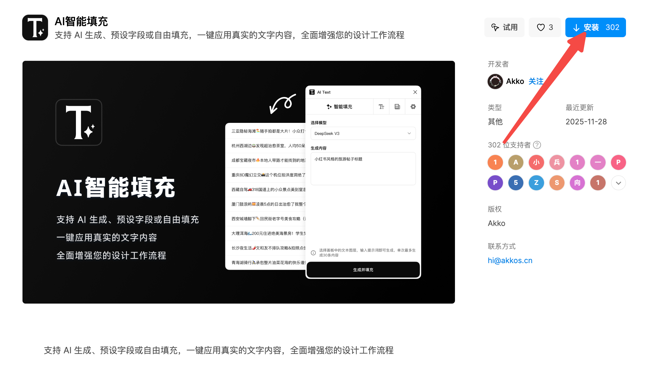 即时设计的插件广场有340+个免费使用的插件,包含设计、字体、文本、图形、资源等多个维度的插件。使用也超简单,即时设计是云端在线的设计工具,打开浏览器就能做设计,因此插件也是点击安装即可使用啦,不用下载!