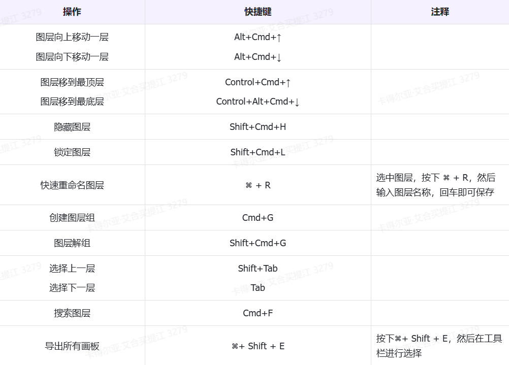 - 改变图层上下位置( Alt + Command + 方向键)