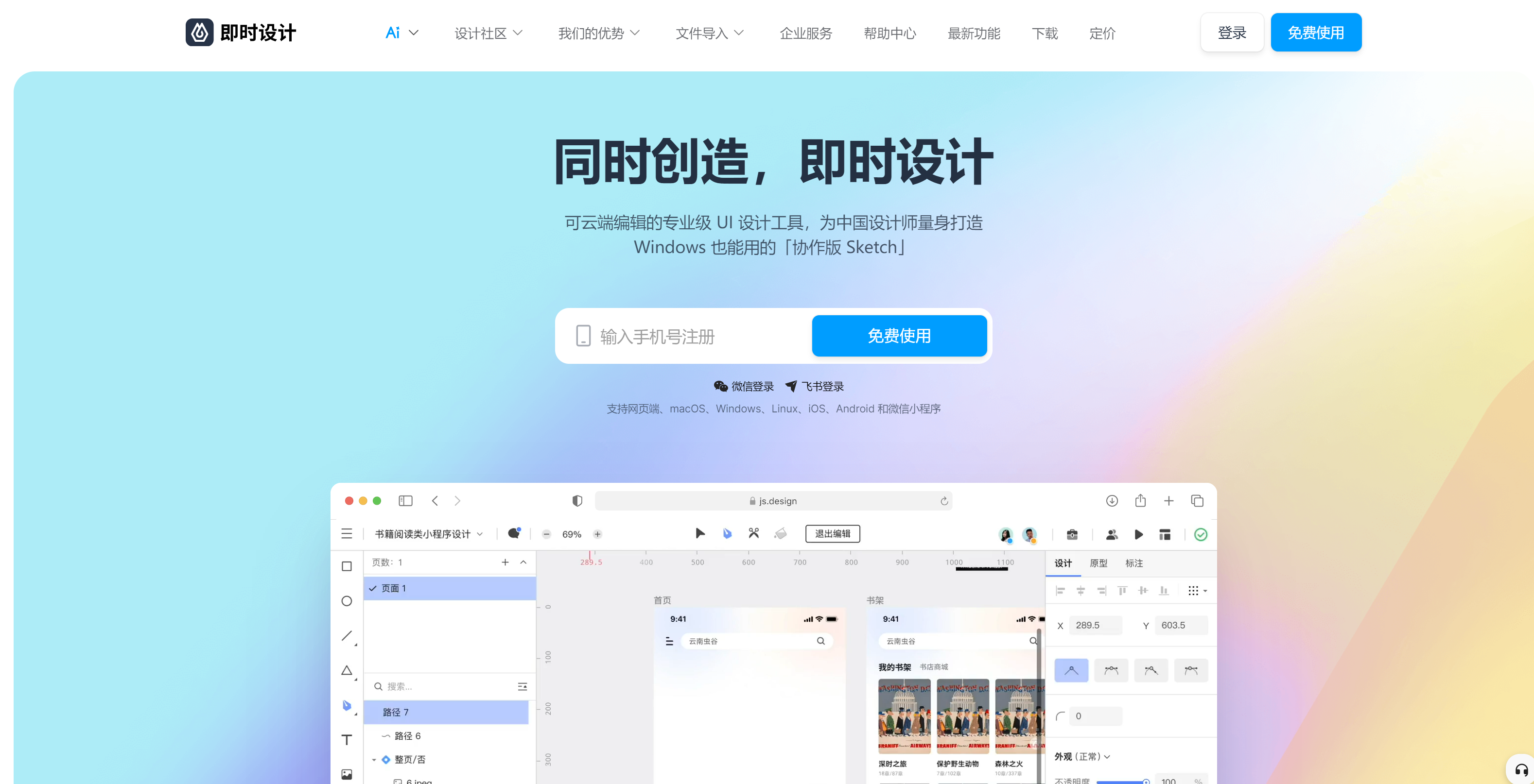 即时设计是一个国产的可云端编辑的专业原型设计工具,拥有非常强大的原型设计功能,具备几乎所有小程序设计工具的所有功能,因此各种类型的小程序原型设计统统都不是问题,可以满足你绝大多数小程序原型设计的需要,是一个非常值得推荐的小程序原型设计工具。